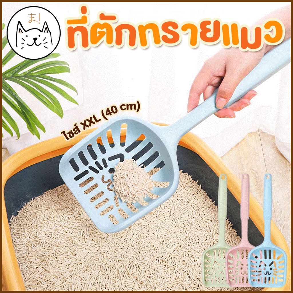 KUMA ま ที่ตักทรายแมว XXL (40 cm) ช้อนตักทรายแมว อุปกรณ์ตักทรายแมว ช้อนกรองทรายแมว ที่ตักทราย (คละสี))