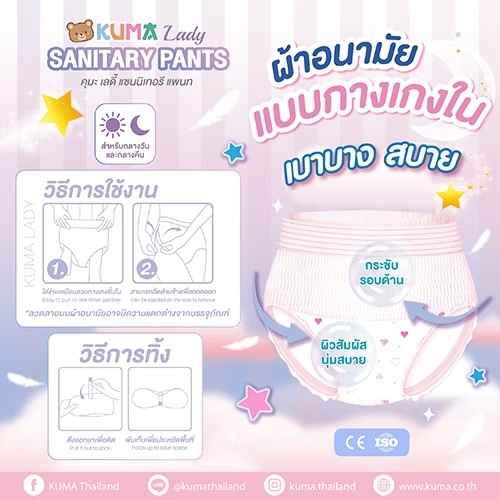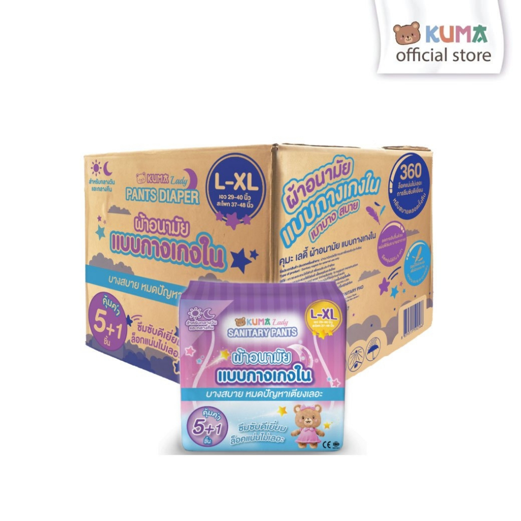 KUMA Lady ผ้าอนามัยแบบกางเกง รุ่น 5+1 จำนวน 1 ห่อ ( ไซต์ L-XL 1 ห่อ มี 6 ชิ้น)