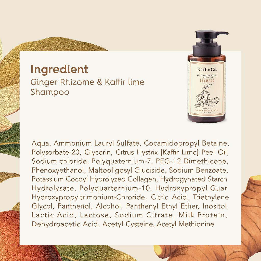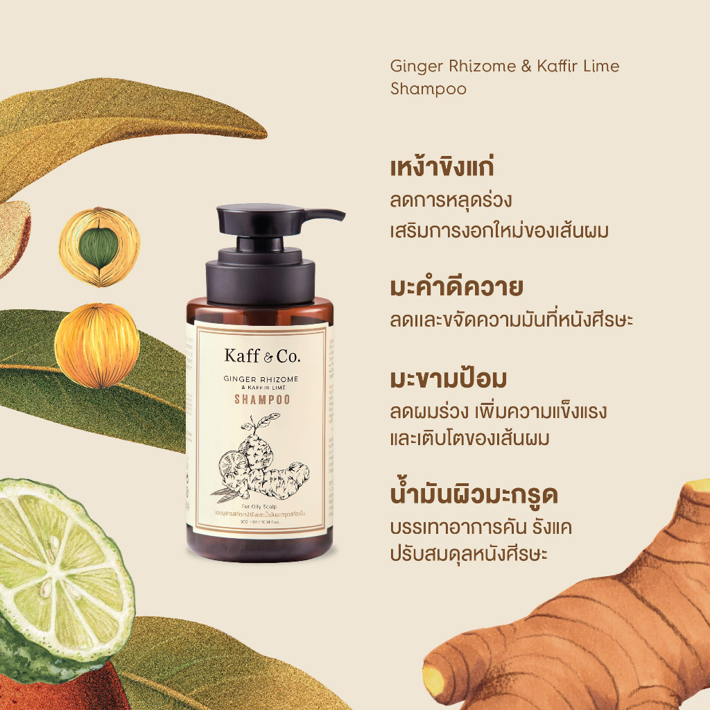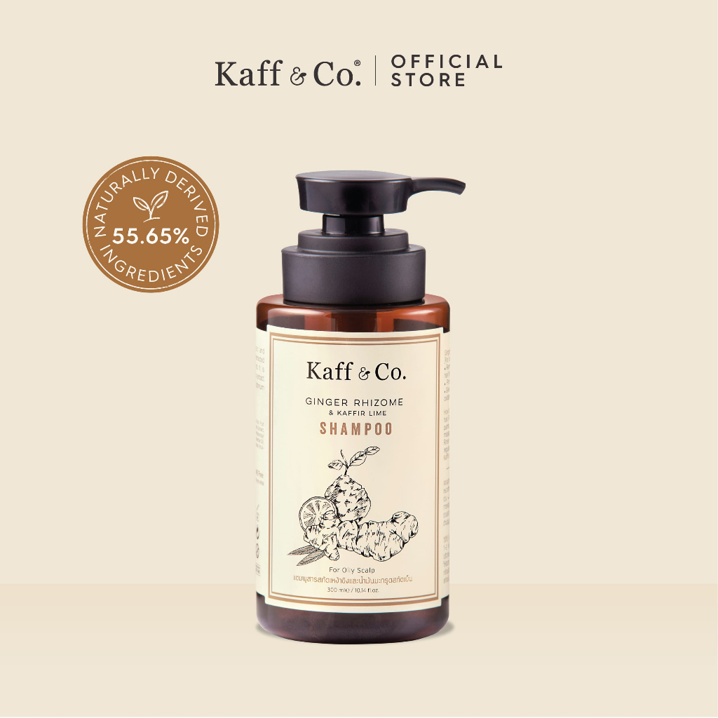 Kaff & Co. แชมพูสำหรับผมมัน ผมร่วง แชมพูสาร สกัดเหง้าขิงและน้ำมันมะกรูดสกัดเย็น 300 ml
