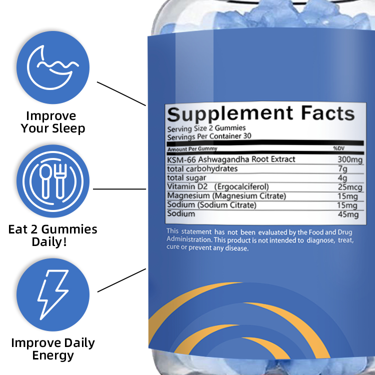 Kagary Ashwagandha Vitamin D Gummies Improve Sleeping Relieve stress Cure Mood Anxiety KSM-66 Supolements