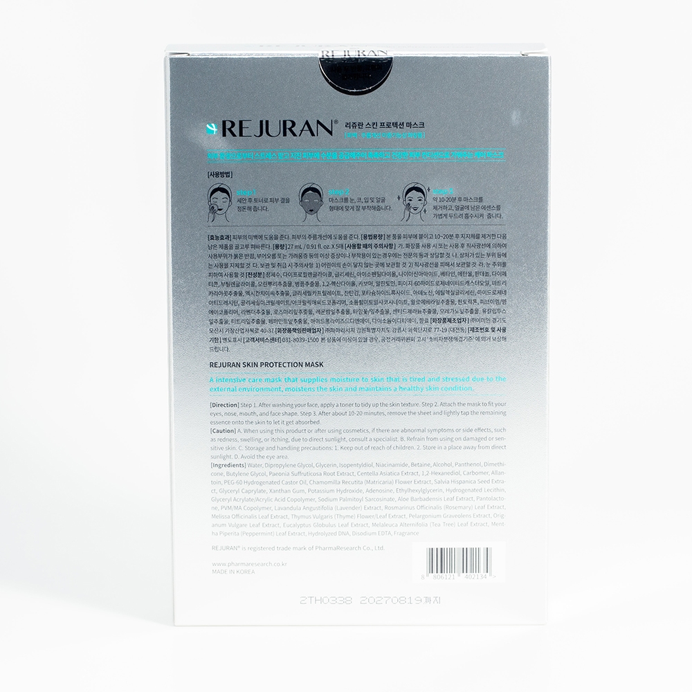 Rejuran Skin Protection Mask [1กล่องบรรจุ 5 แผ่น] มาสก์บำรุงผิวหน้าสูตรเข้มข้นจากเกาหลี