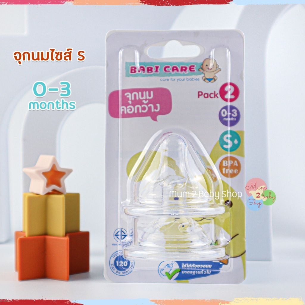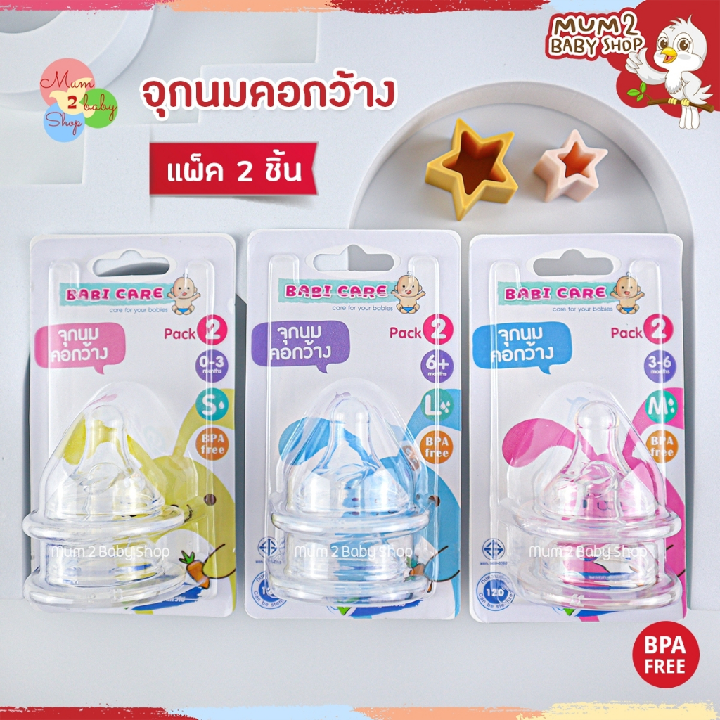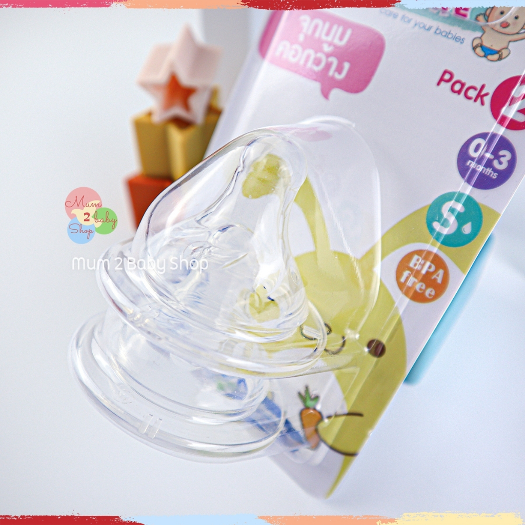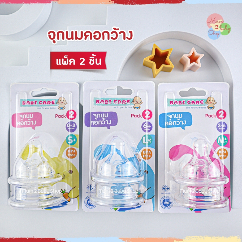 เบบี้แคร์ จุกนมคอกว้าง จุกนมเด็ก นุ่มเสมือนนมแม่ ไซส์S,M,L 1แพ็ค 2จุก