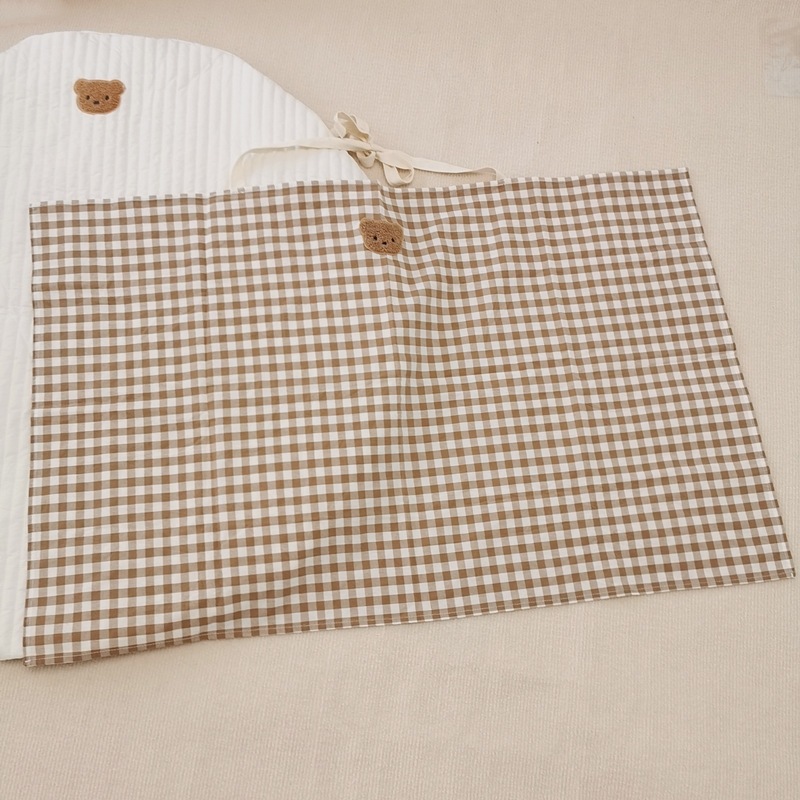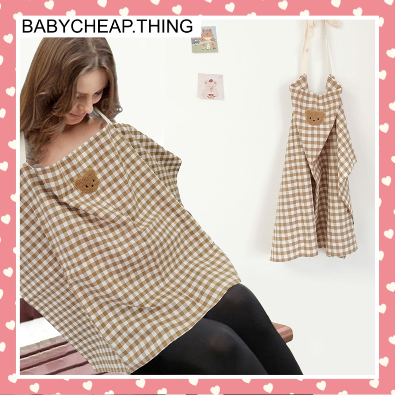 ผ้าคลุมให้นมบุตร ( ab119 ) มีเชือกผูกที่คอลายน้องหมีนูนปักติดที่ตัวผ้าลายน่ารัก
