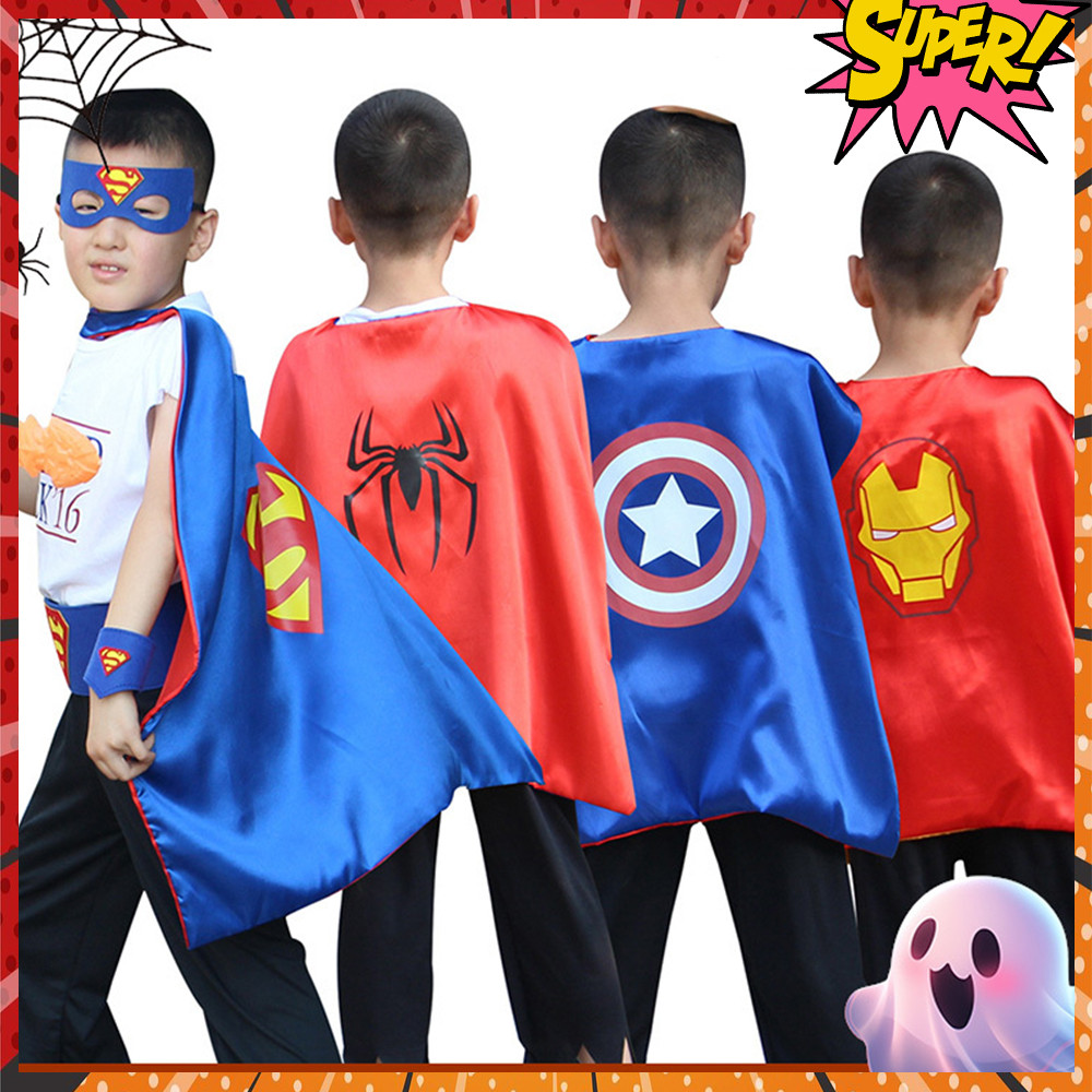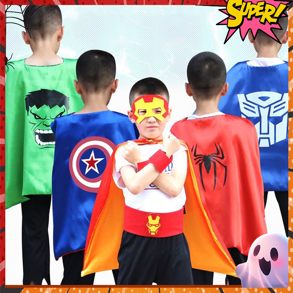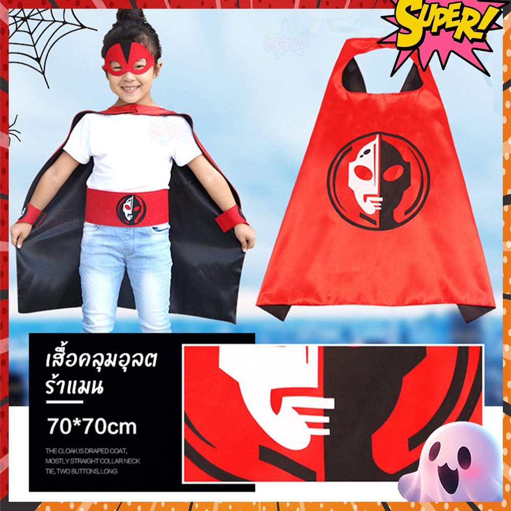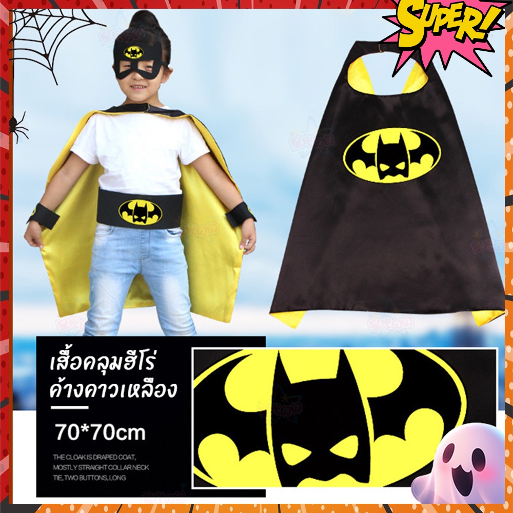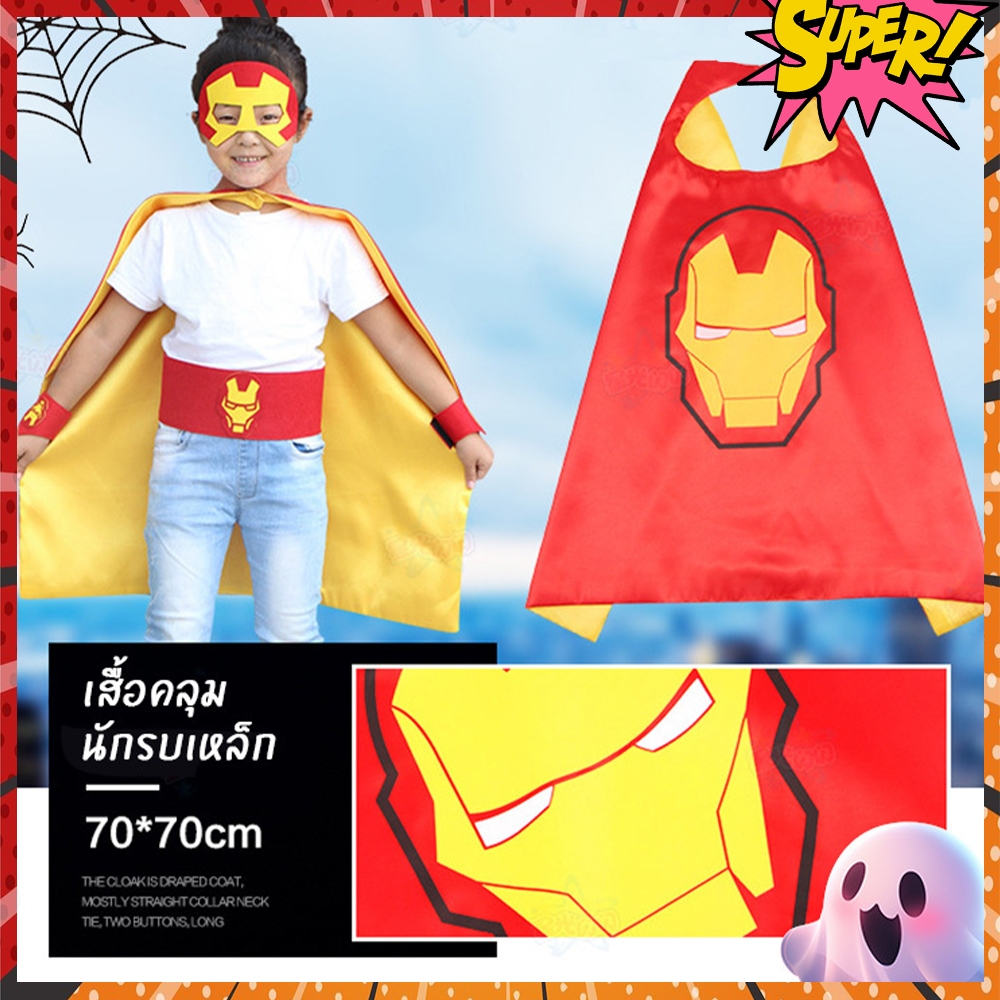 ผ้าคลุมไหล่ซุปเปอร์ฮีโร่เด็ก ชุดคลุมฮีโร่ ชุดการแสดง เสื้อคลุม แถมหน้ากาก