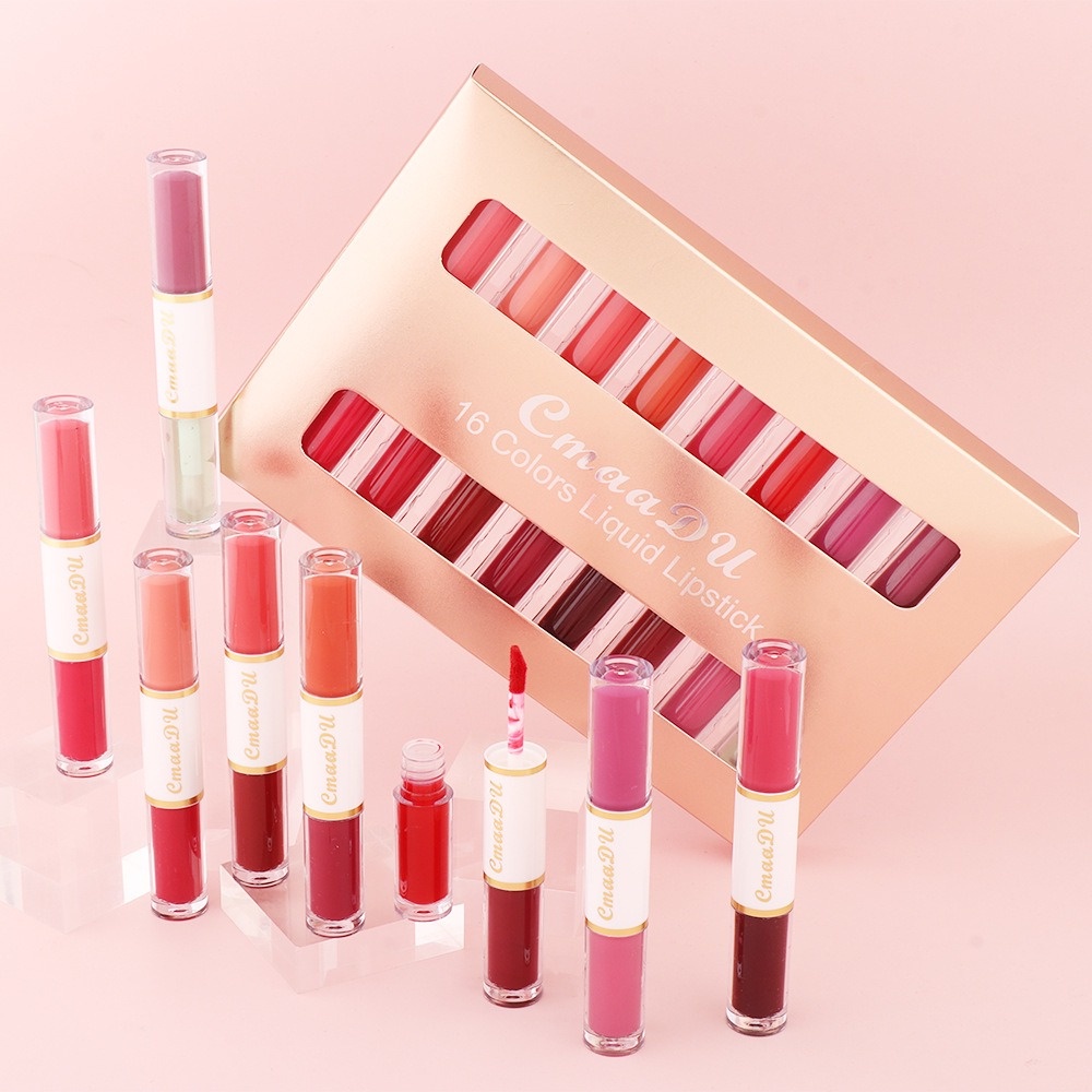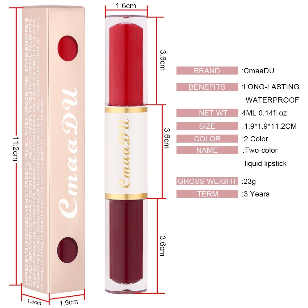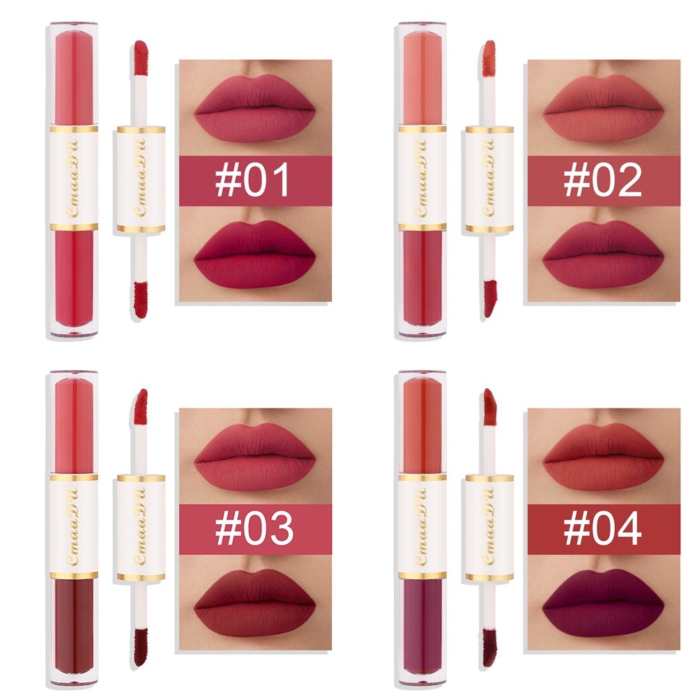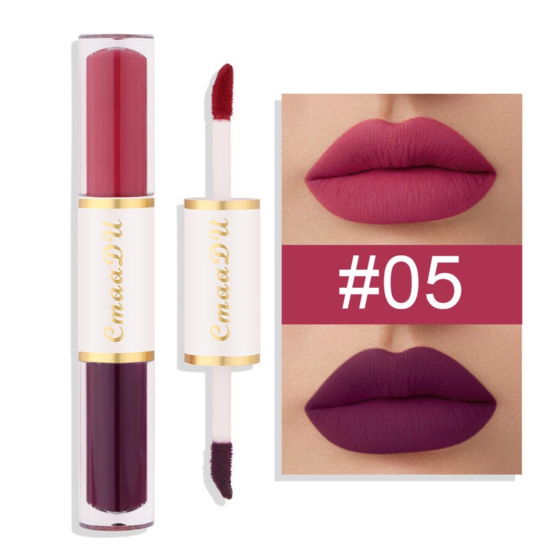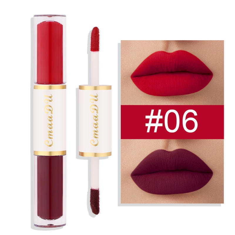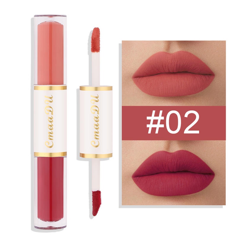 2 In 1 ลิปสติก ลิปกลอส เนื้อแมตต์ กํามะหยี่ สองหัว เม็ดสีสูง ติดทนนาน เนียนนุ่ม น้ําหนักเบา ลิควิดลิปทินท์ เครื่องสําอาง