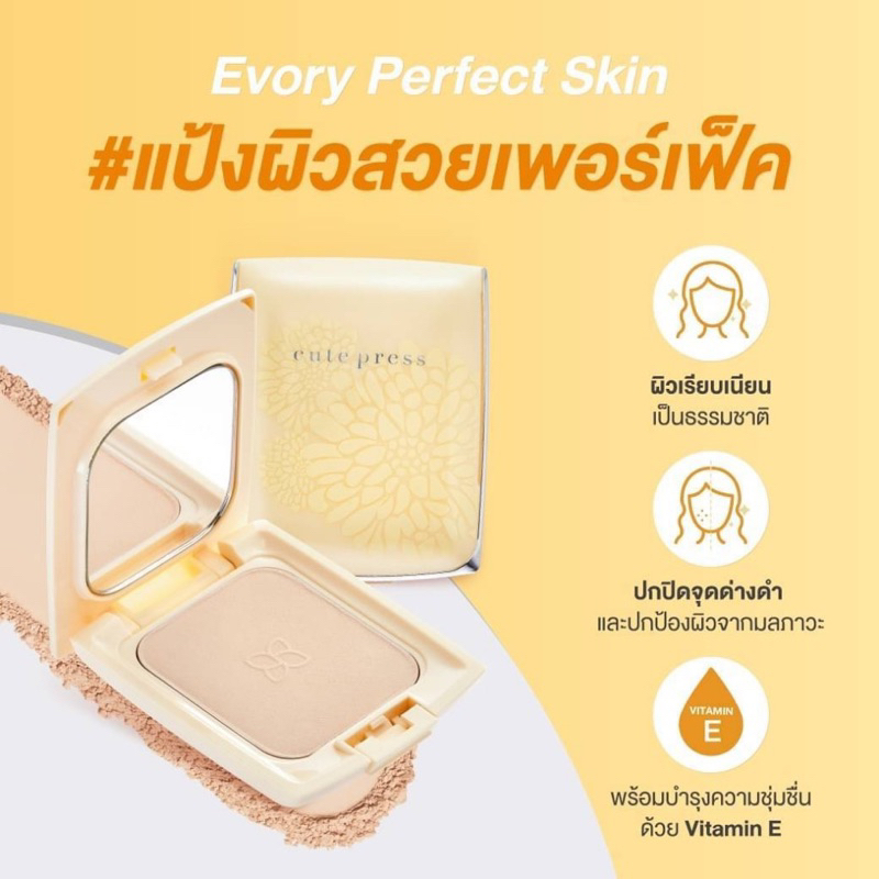 CUTE PRESS แป้งผสมรองพื้น EVORY PERFECT SKIN PLUS VITAMIN E FOUNDATION POWDER
