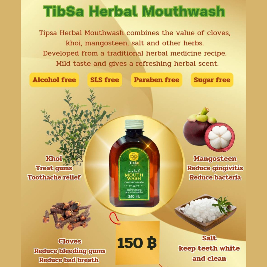 Tibsa Herbal Mouthwash ขนาด 240 ml. น้ำยาบ้วนปาก สมุนไพร รสชาติอ่อนโยน ปราศจากแอลกอฮอล์