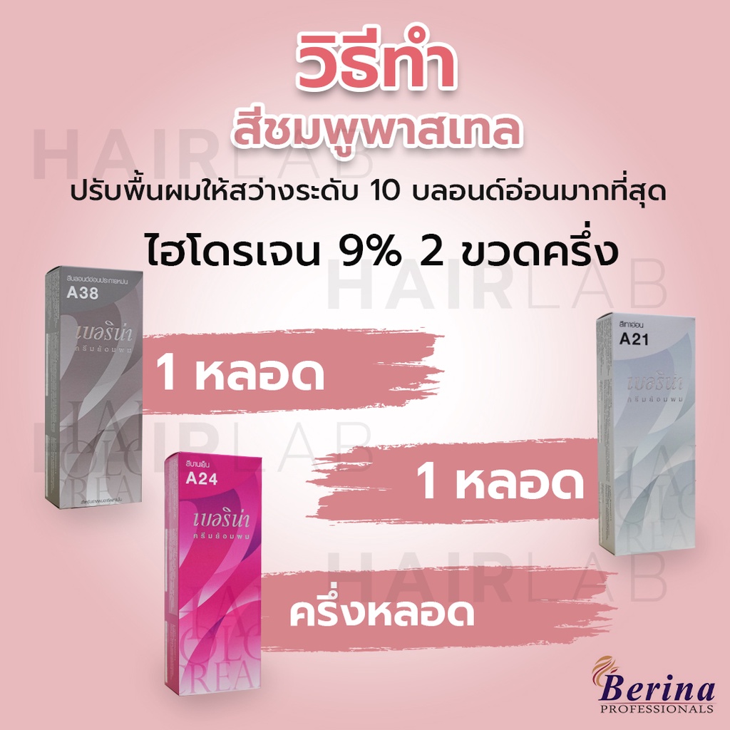 พร้อมส่ง เซตสีผมเบอริน่ า Berina Set A24+A21+A38 สีชมพูพาสเทล สีผมเบอริน่า สีย้อมผม ครีมย้อมผม