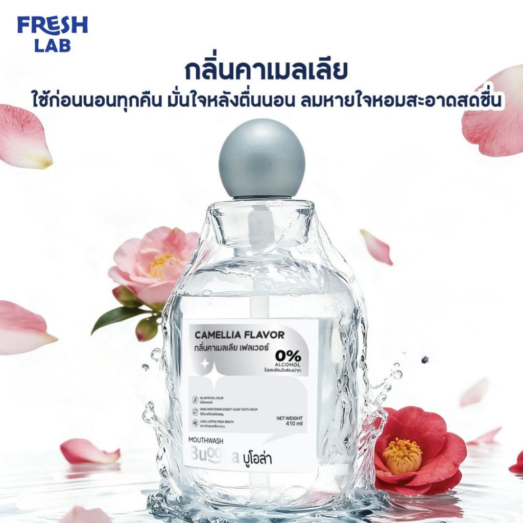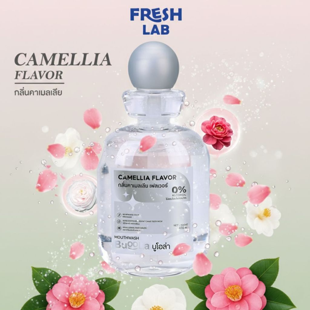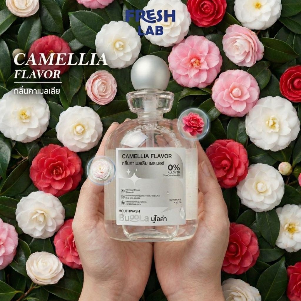 BUOOLA Camellia Mouthwash น้ำยาบ้วนปากกลิ่นใหม่ กลิ่นคาเมลเลีย สูตรหอมกว่าเดิม เย็นสดชื่น แอลกอฮอลล์0%