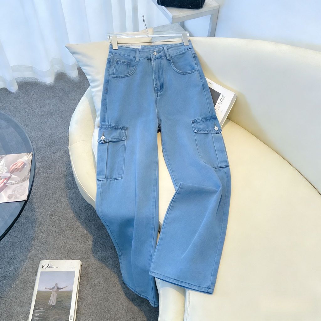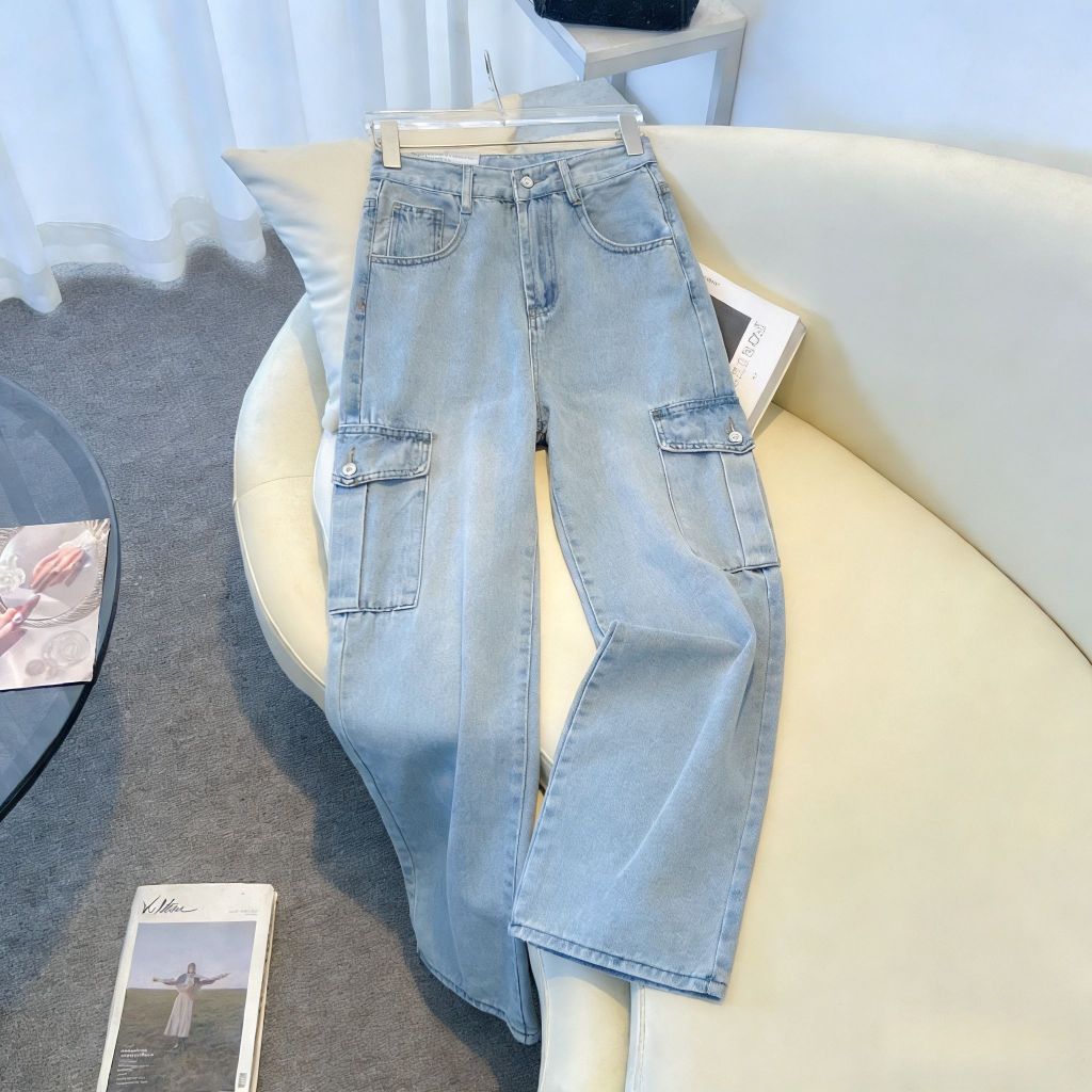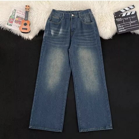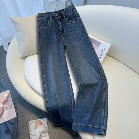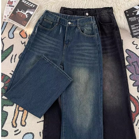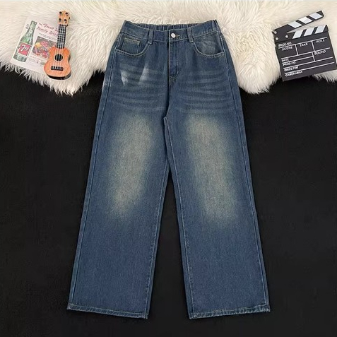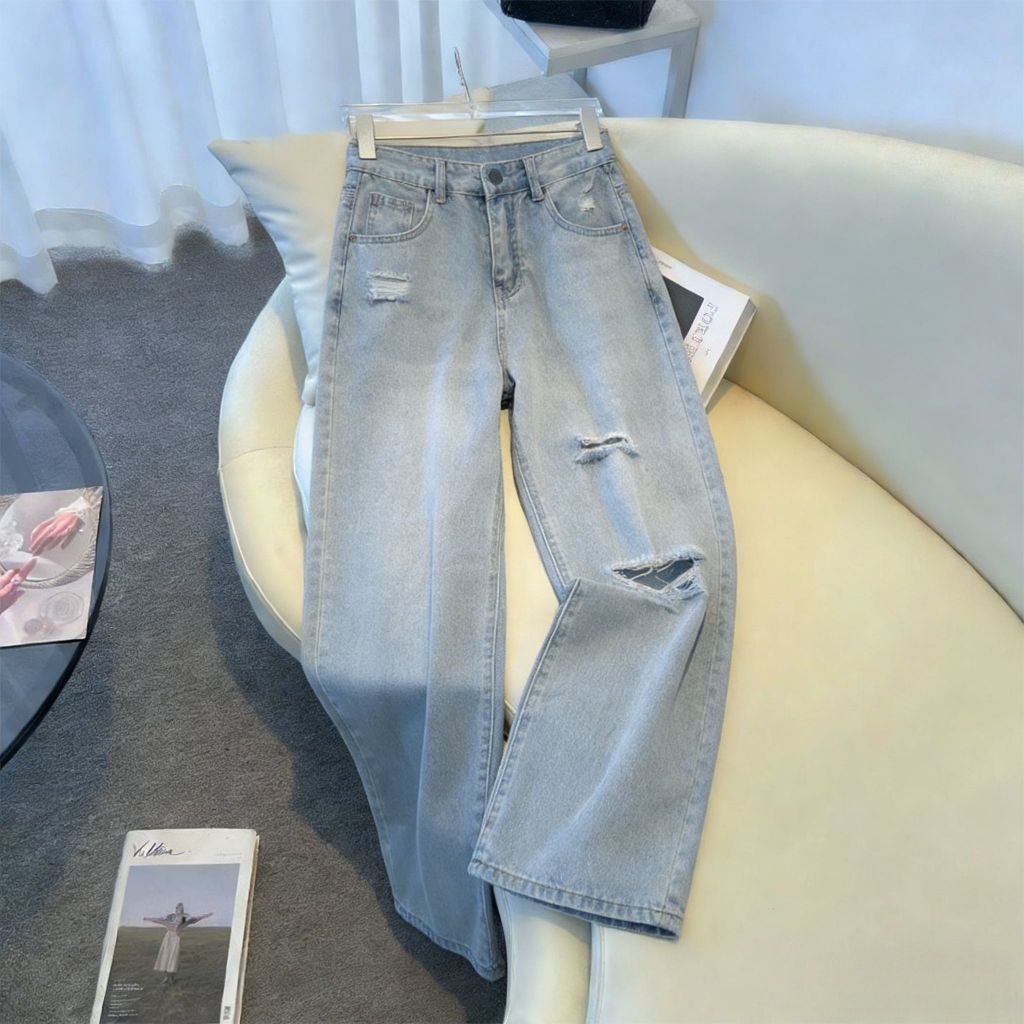 Plus size~Baggy Jeans Blue Jeans for women กางเกงทรงตรงหลวมๆ เทรนด์ใหม่ กางเกงยีนส์อเนกประสงค์แบบลำลอง