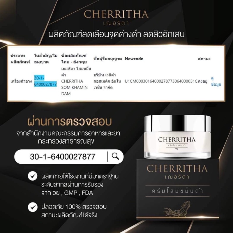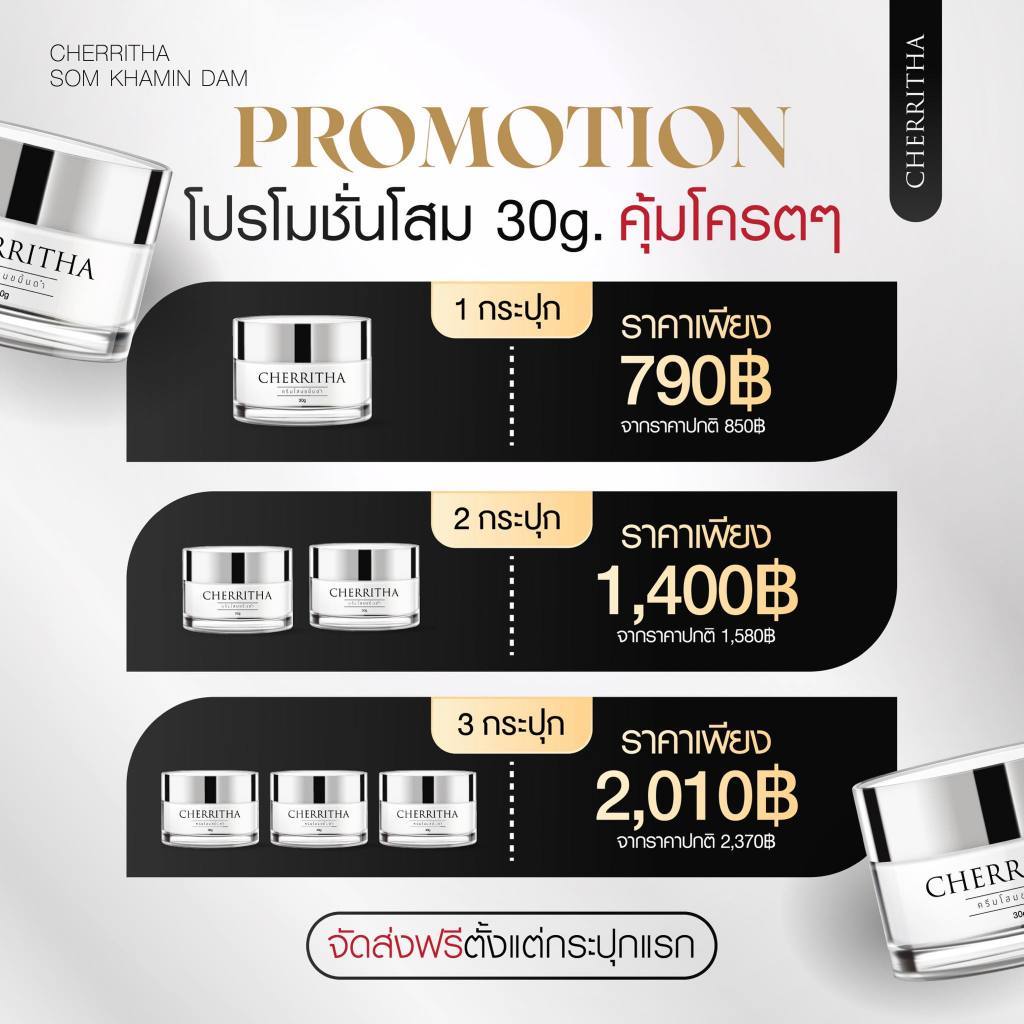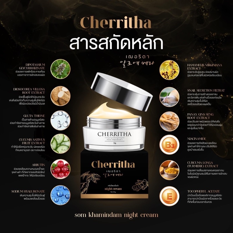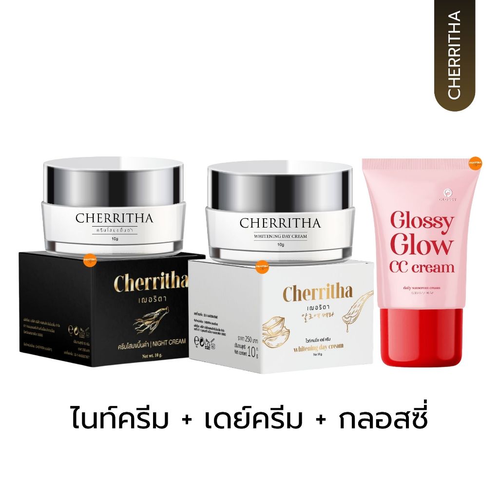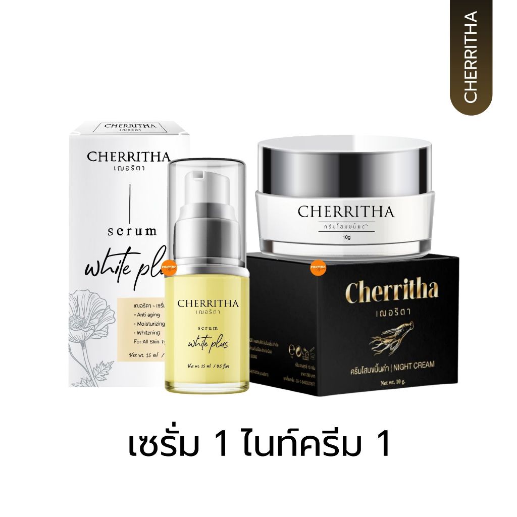 เฌอริตา ครีมโสมขมิ้นดำ เฌอเดย์ เฌอไนท์ เซรั่ม ลดสิว รอยสิว ผิวหน้า กระจ่างใส CHERRITHA โสมเฌอ