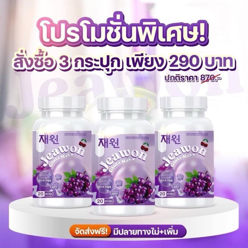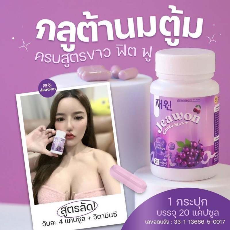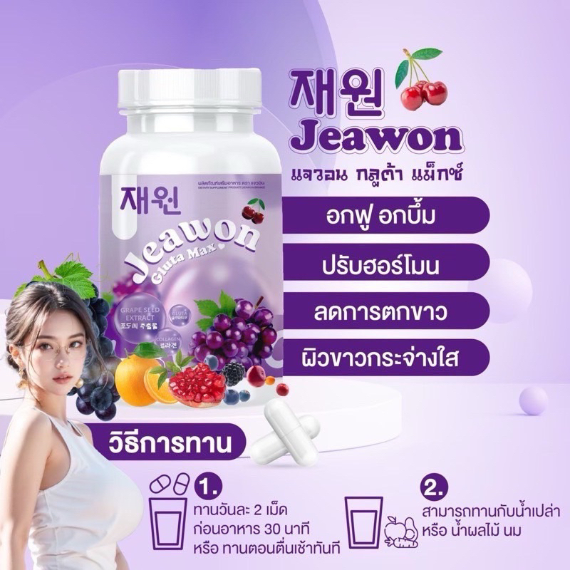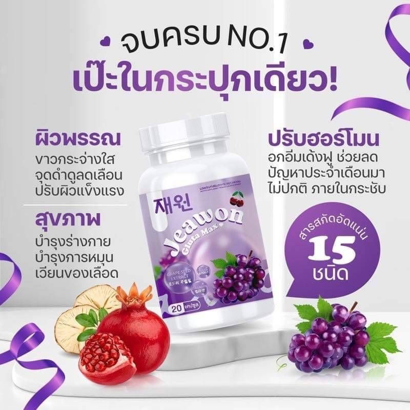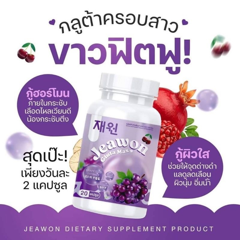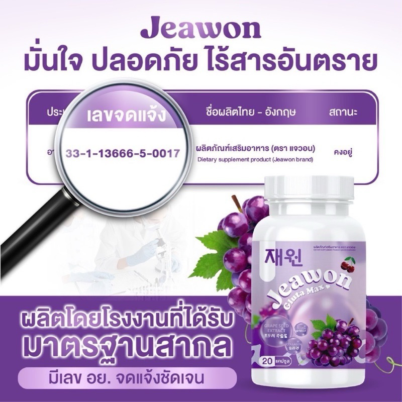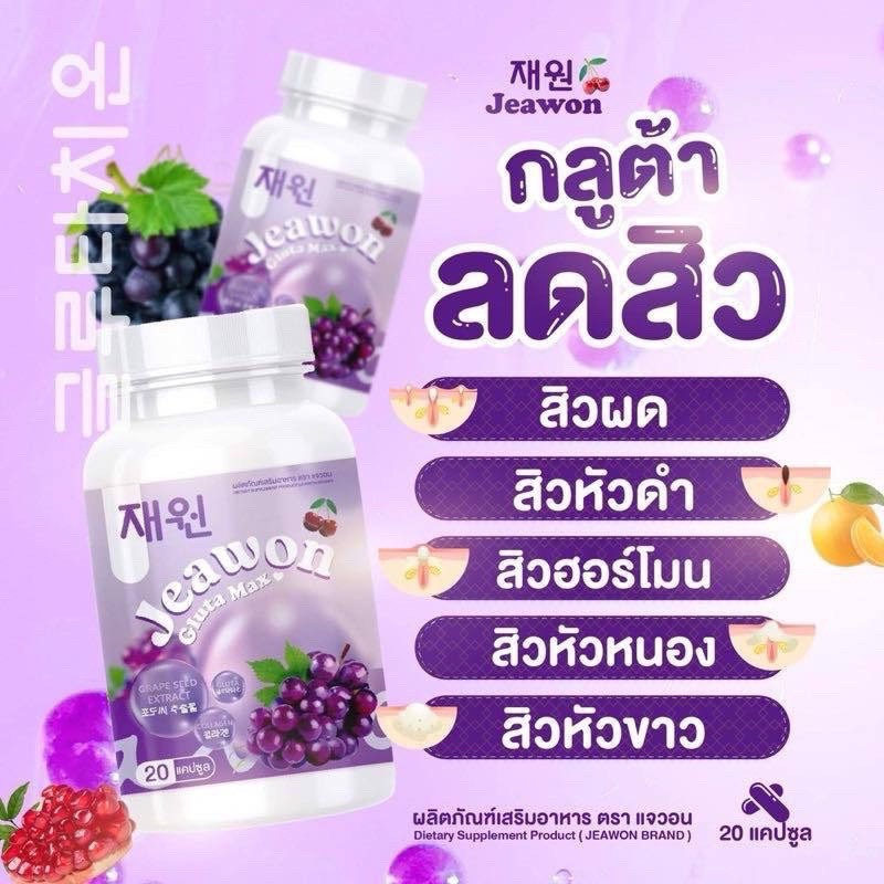 [ของแท้ ลดในไลฟ์50%🍇]กลูต้าแจวอน JEAWON GLUTA MAX เเจวอนกลูต้าแม็กซ์ คอลลาเจนแจวอน ลดสิว ผิวกระจ่างใส ลดฝ้า กระ อกตู้ม