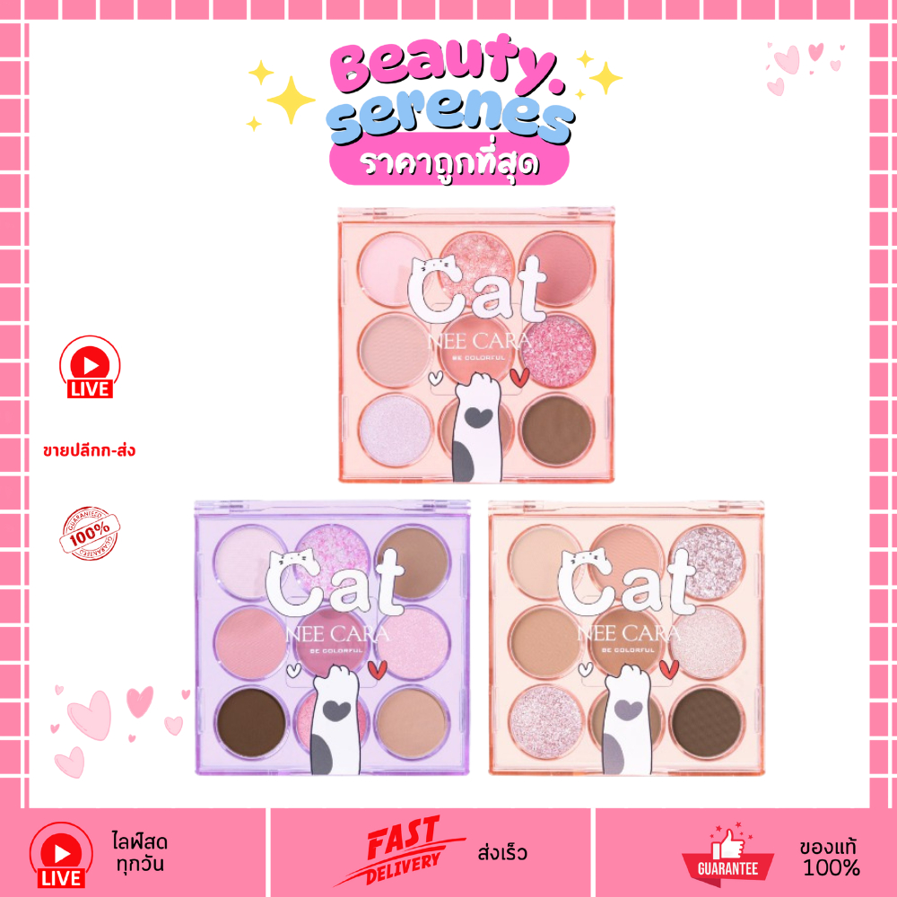 NA4654 Nee Cara Cat 9-Color Eyeshadow นีคาร่า คัลเลอร์ ยูนิแมว อายแชโดว์ 9 สี