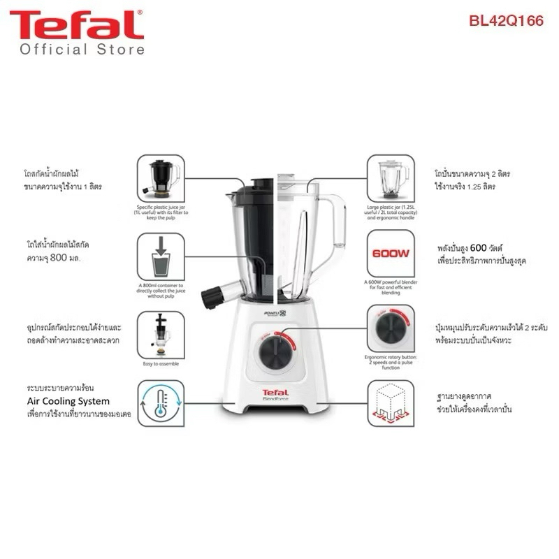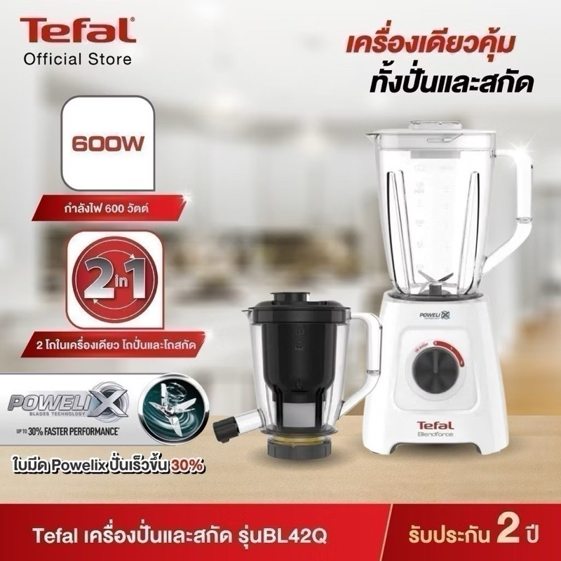 Tefal Blendforce 2 in 1 เครื่องปั่นและสกัดน้ำผักผลไม้ รุ่น BL42Q166 สีขาว กำลังไฟ 600 วัตต์