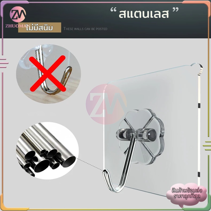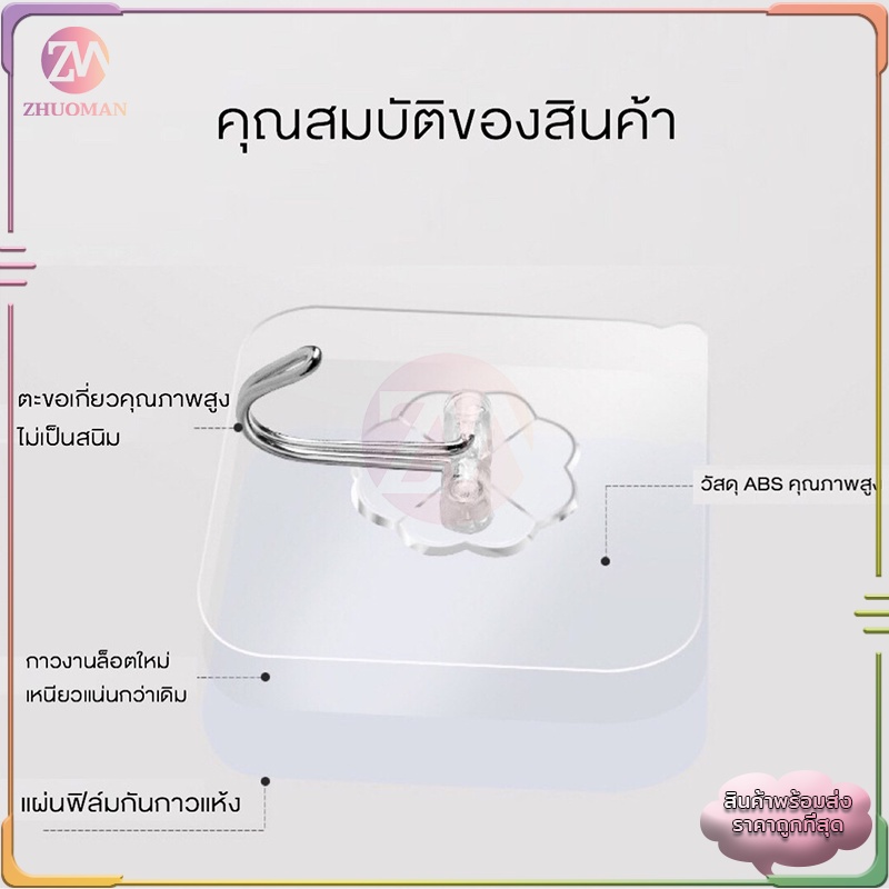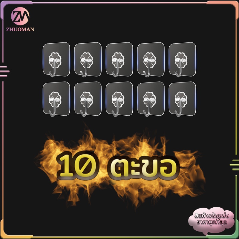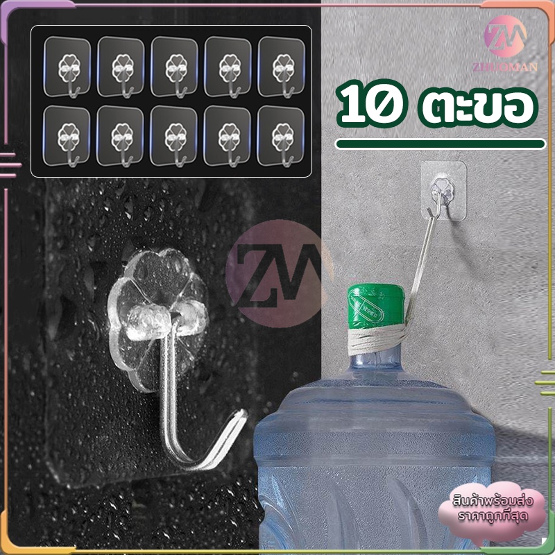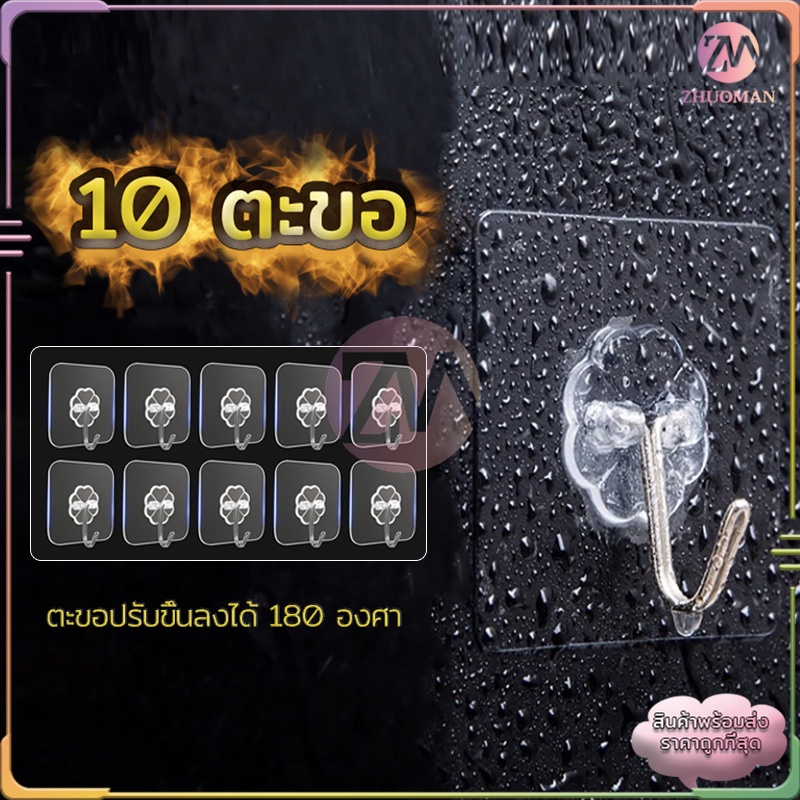 ตะขอ(10 ตะขอ)ตะขอใส ตะขอติดผนัง ตะขออเนกประสงค์ ตะขอติดผนัง ที่แขวนตะหลิว ที่แขวนกุญแจ ไม่ต้องเจาะ รับน้ำหนักได้เยอะ