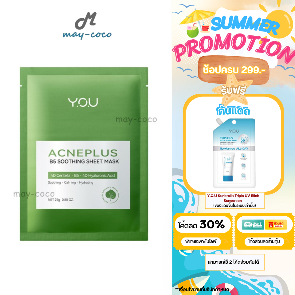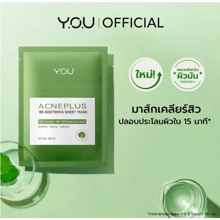 ถูก/แท้/มีไลฟ์ มาสก์ YOU Y.O.U Acne Plus B5 Soothing Sheet Mask มาสก์หน้า ลดสิว มาสก์ลดสิว บำรุงผิวหน้า แผ่นมาสก์