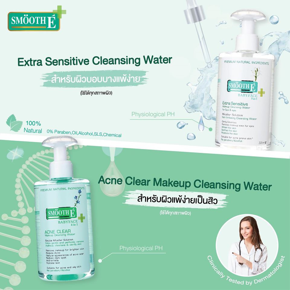Smooth E Acne clear makeup cleansing water 200/400ml.คลีนซิ่งสำหรับผู้ที่เป็นสิว หรือผิวมัน และมีแนวโน้มจะเกิดสิวได้ง่าย