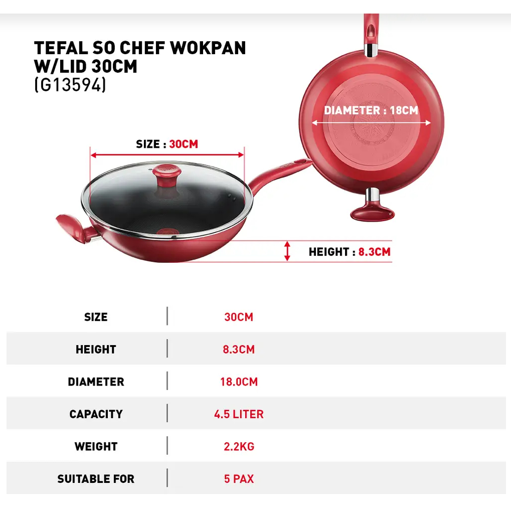 Tefal So Chef รุ่น G1359495 กระทะก้นลึก ก้นอินดักชั่น ใช้ได้กับเตาทุกประเภท พร้อมฝาแก้ว ขนาด 30 ซม.