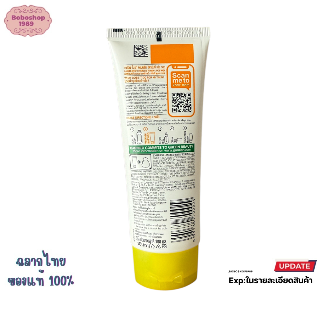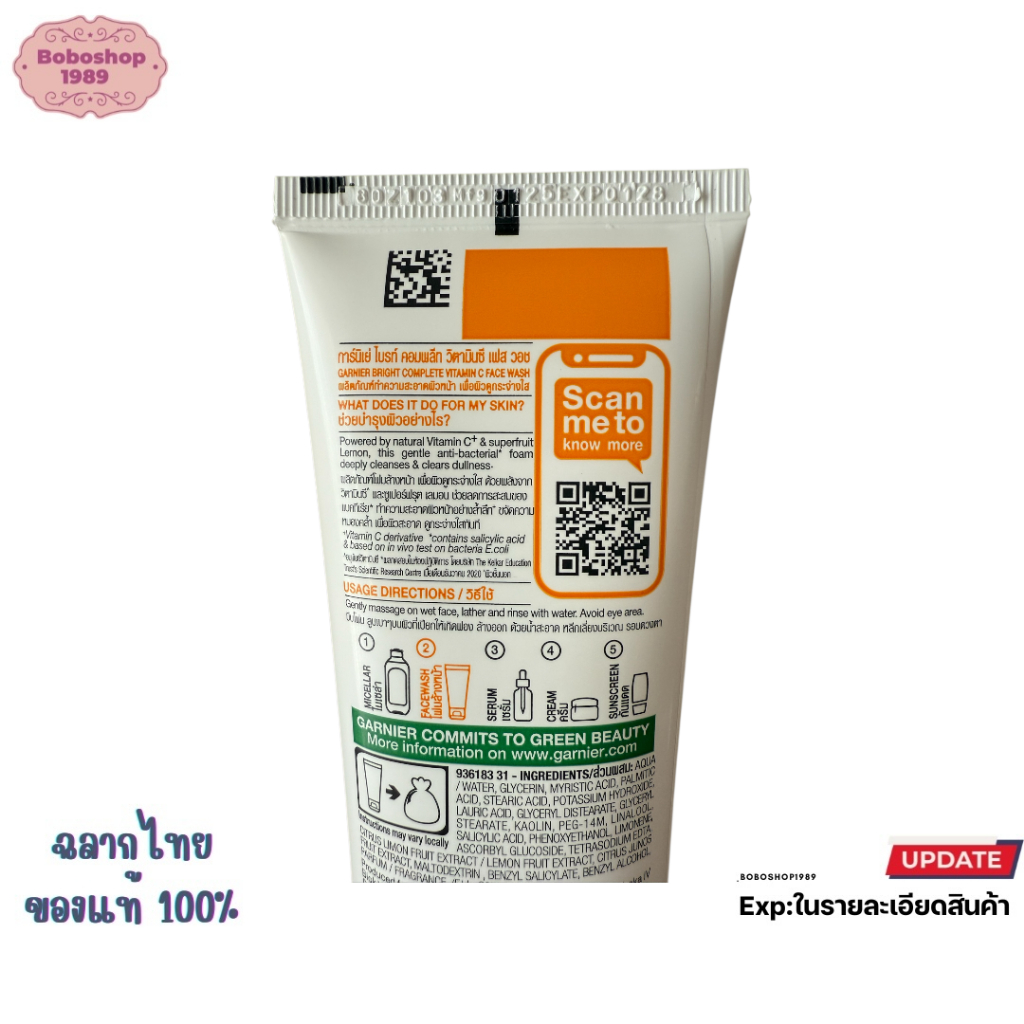 โฟมล้างหน้า การ์นิเย่ Garnier Bright Complete Vitamin C Face Wash For All Skin Types 100-150 ml