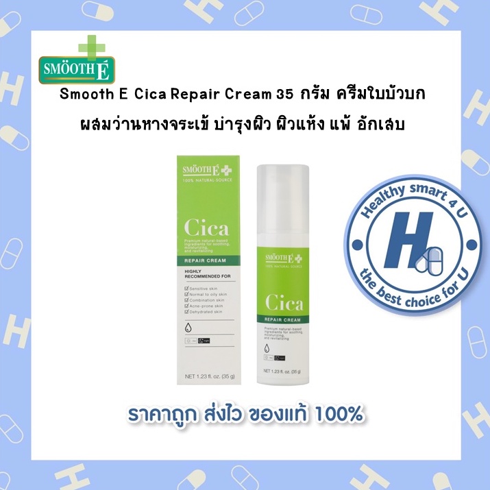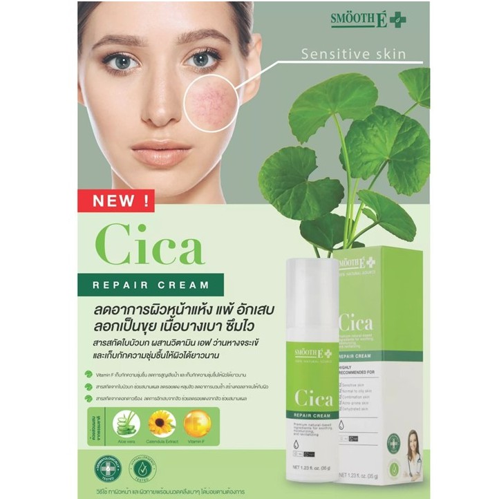Smooth E Cica Repair Cream 35 กรัม สมูทอี ซิกก้า รีแพร์ ครีมใบบัวบก ผสมว่านหางจระเข้ บำรุงผิว ผิวแห้ง แพ้ อักเสบ