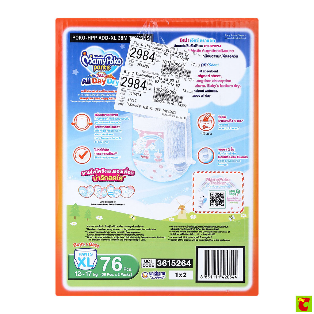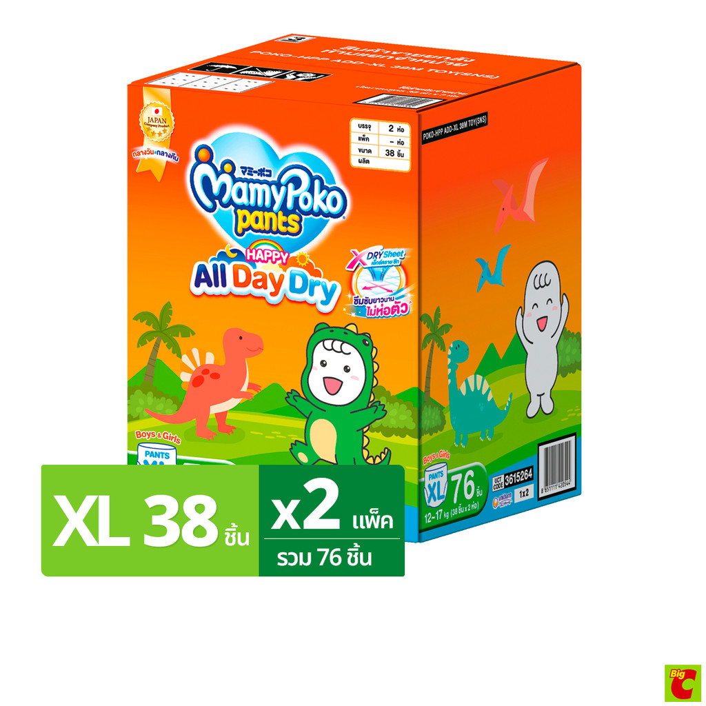 มามี่โพโค แพ้นท์ แฮปปี้ ออลเดย์ดราย กางเกงผ้าอ้อมเด็ก ขนาด XL แพ็ค 76 ชิ้น