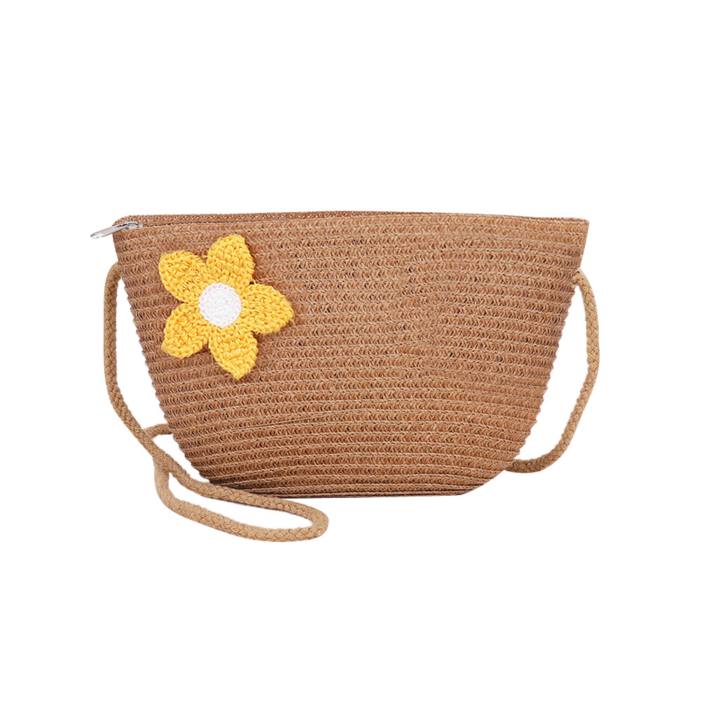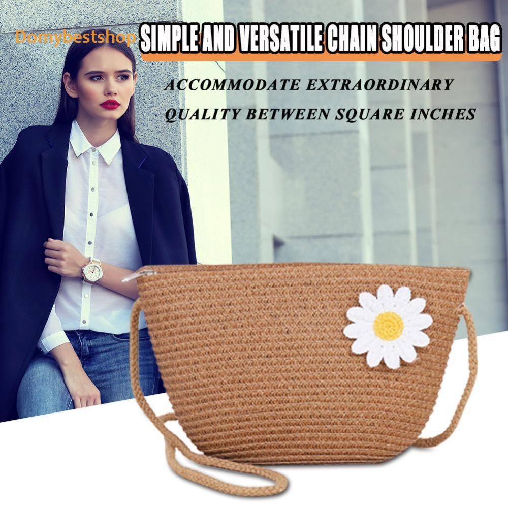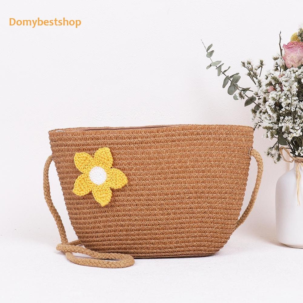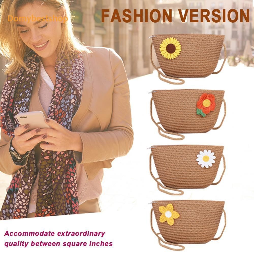 🚚 ผู้หญิงแฟชั่นฟางสานดอกไม้ซิปไหล่กระเป๋าสะพายข้างกระเป๋าชายหาด [Domybestshop.th]