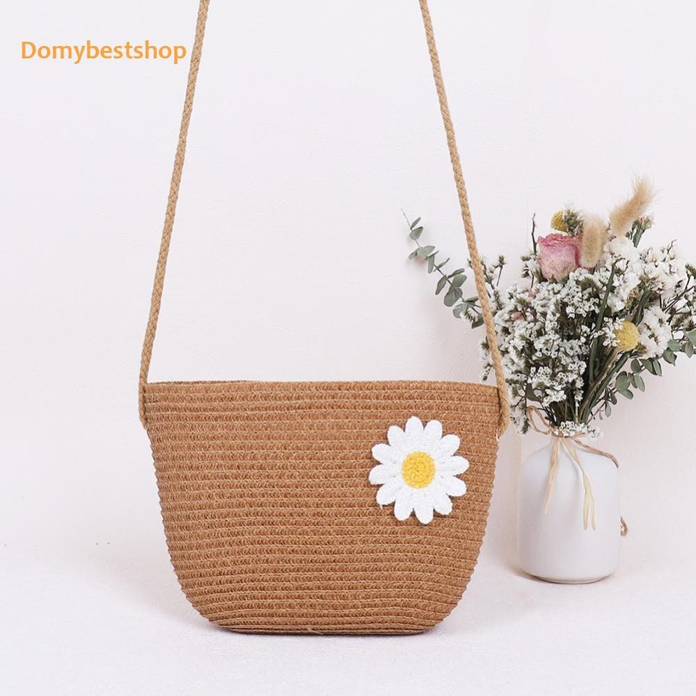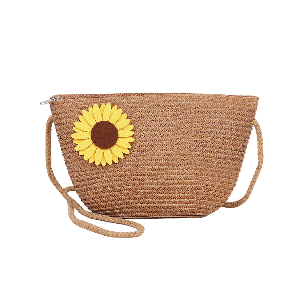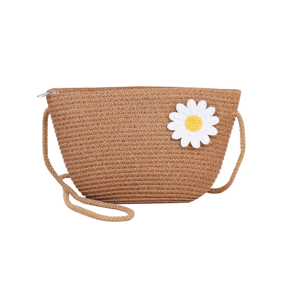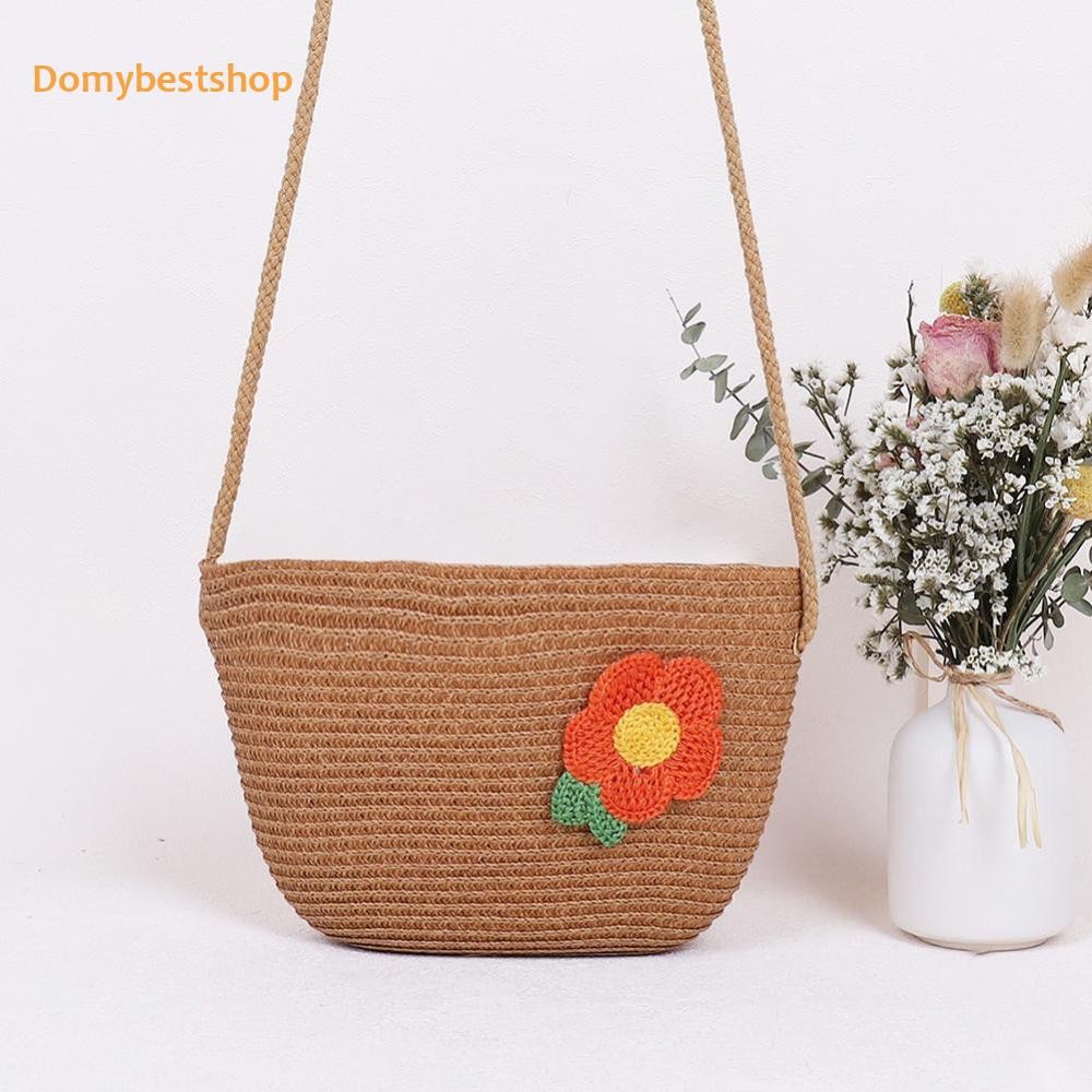 🚚 ผู้หญิงแฟชั่นฟางสานดอกไม้ซิปไหล่กระเป๋าสะพายข้างกระเป๋าชายหาด [Domybestshop.th]