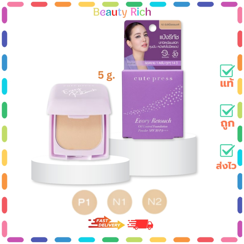 (1 ตลับ) Cute Press (ตลับม่วง) แป้งรีทัชในตำนาน อิเวอร์รี่ รีทัช ออยล์ คอนโทรล ฟาวเดชั่น (5 g.)