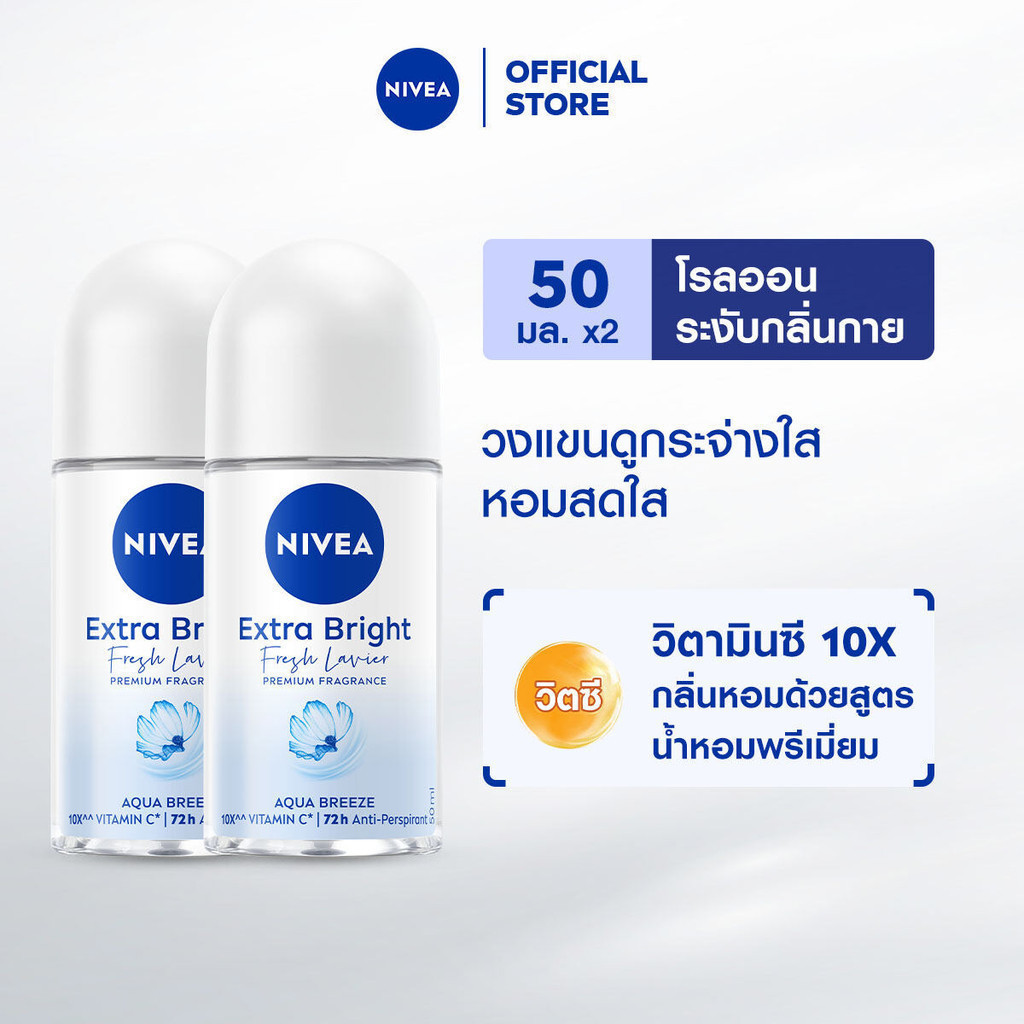 นีเวีย เอ็กซ์ตร้า ไบรท์ เฟรช ลาเวียร์ พรีเมียม ฟราแกรนซ์ อควา บรีซ โรลออน 50 มล. 2ชิ้น NIVEA