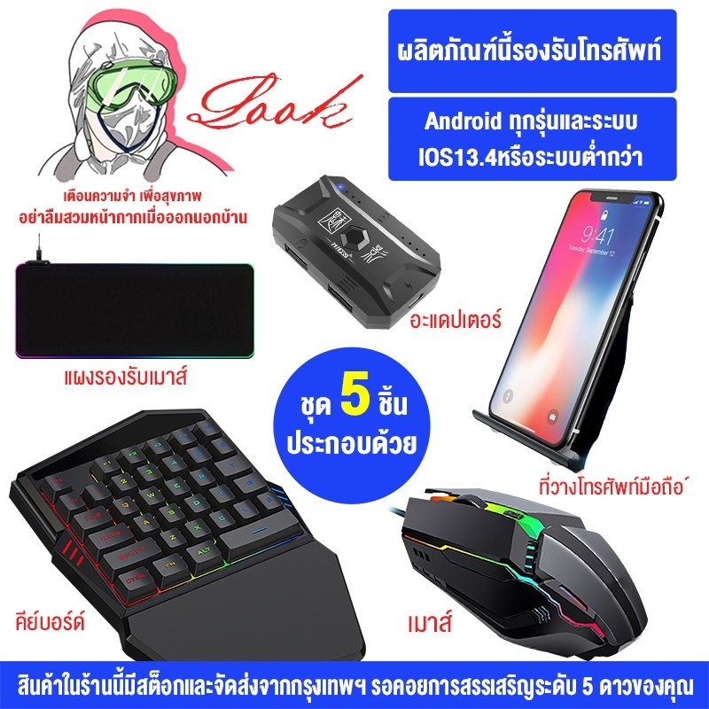 Keyboard Mouse Gaming Controller M1 pro Single Hand Gaming RGB Paket Game Set 5in1 PUBG Android Ios