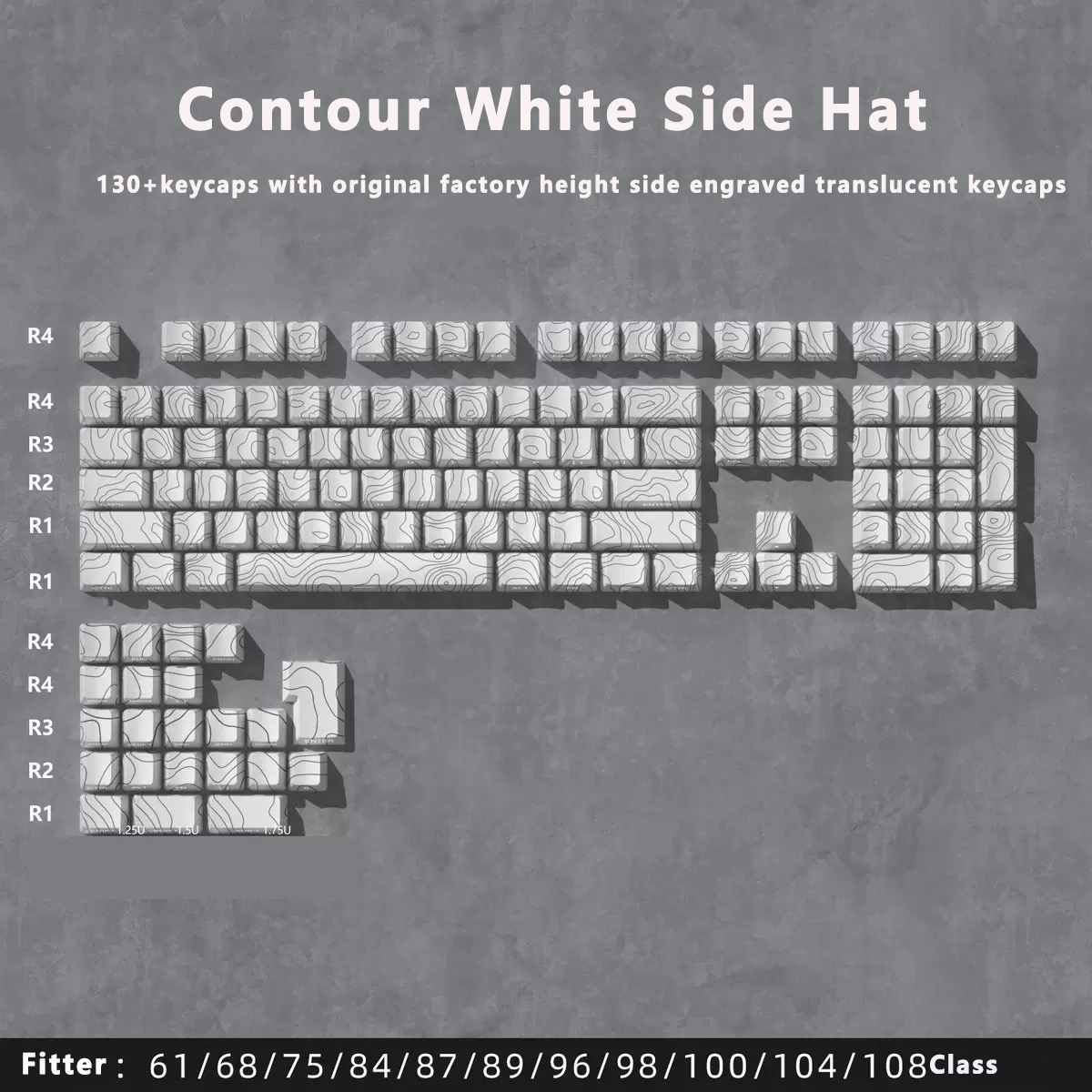Keycap Contour 4.0 Topographic Circuit Across LED Keycap Doubleshot PBT 97/130 Keycaps