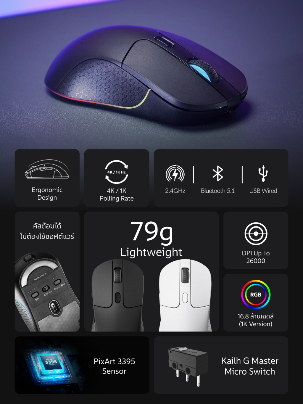 Keychron M3 Wireless Optical Mouse เมาส์ไร้สาย เมาส์ไวเลส