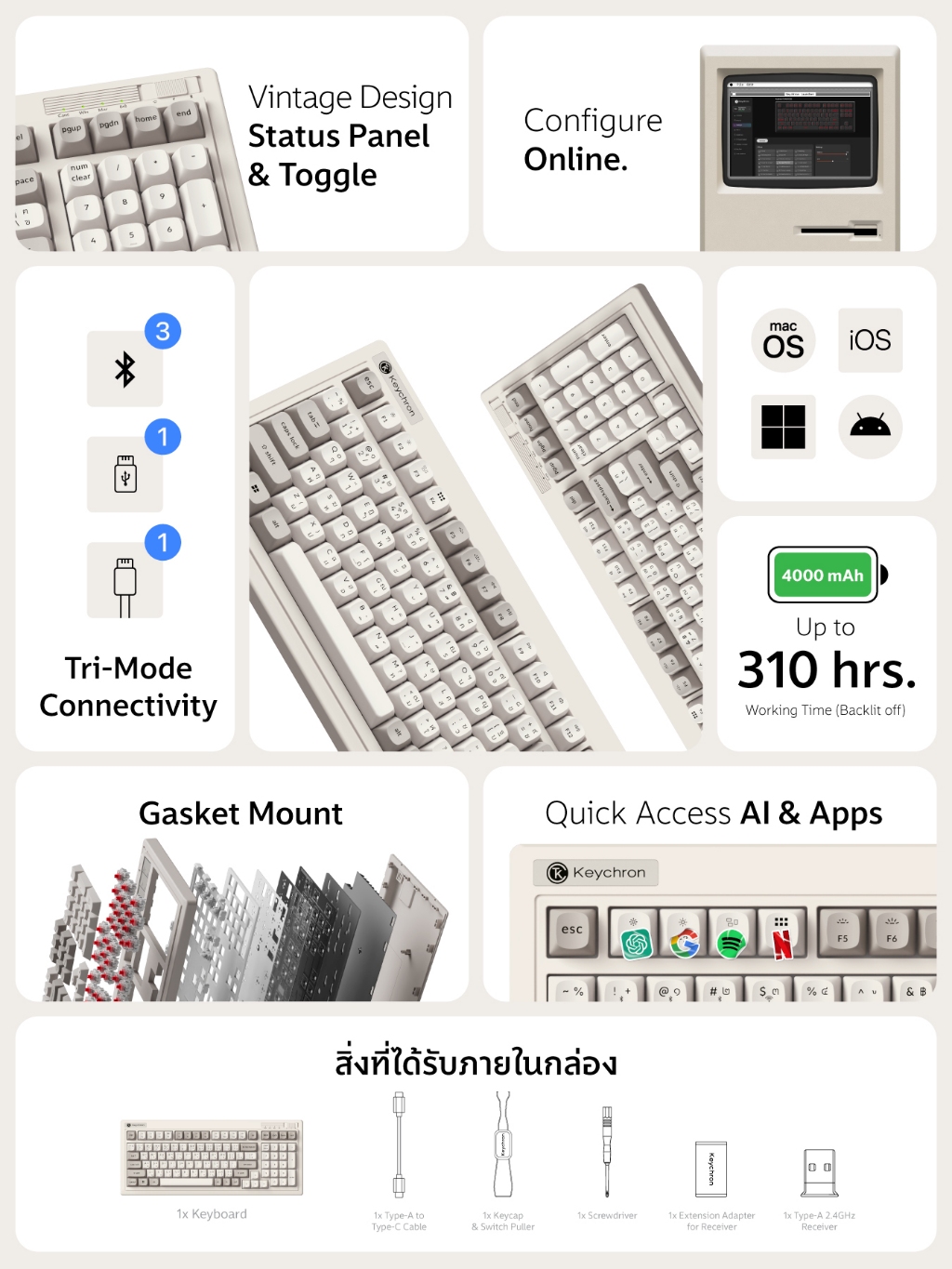 Keychron R5 96% Retro Wireless Mechanical Keyboard คีย์บอร์ดไร้สาย Retro Style Keyboard