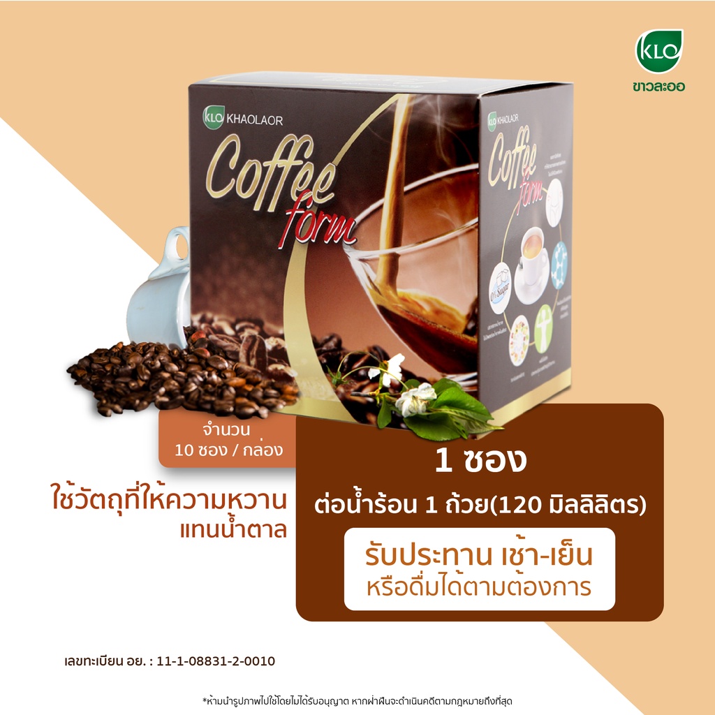 Khaolaor ขาวละออ คอฟฟี่ฟอร์ม กาแฟสำเร็จรูป 10 ซอง/กล่อง