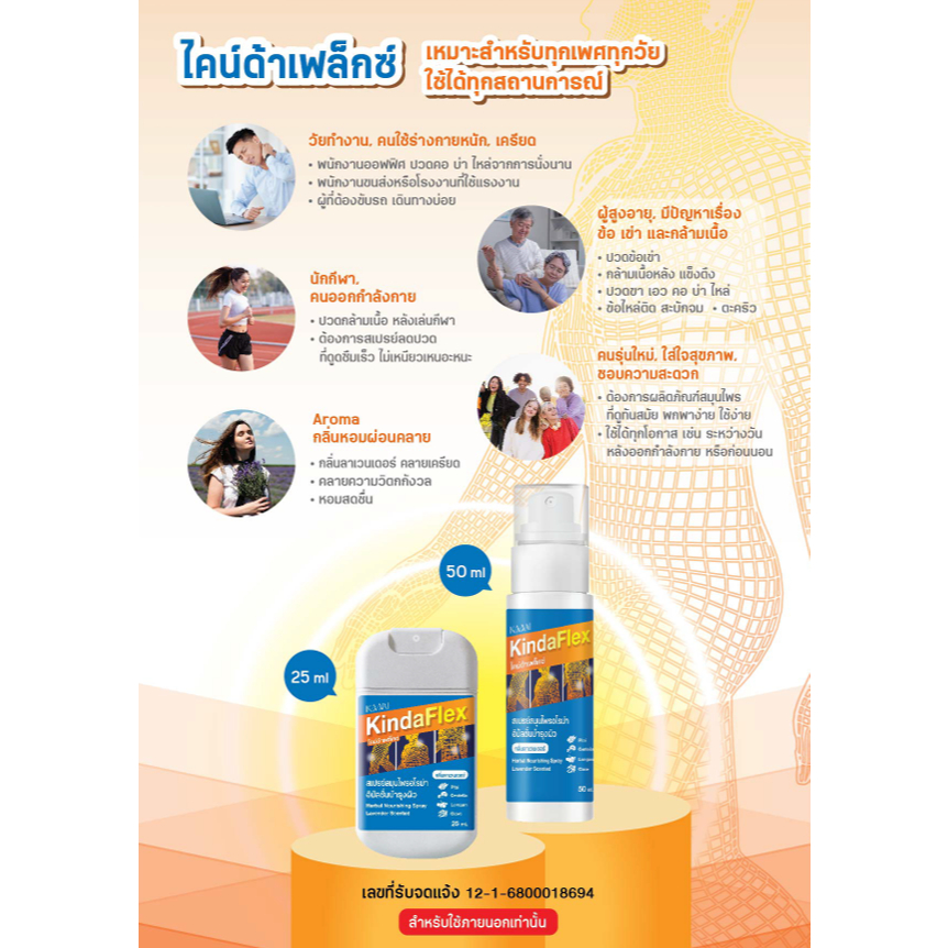 KindaFlex สเปรย์สมุนไพรอโรม่า อิมัลชั่นบำรุงผิว - 25ml (แถมฟรี เคส!)