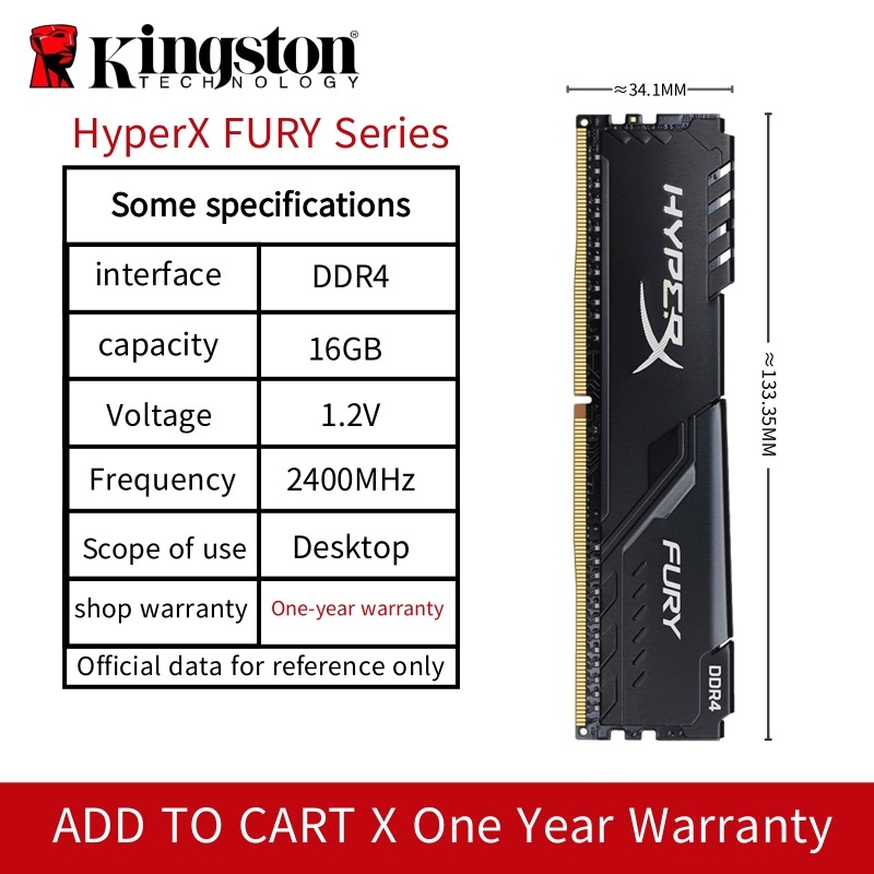 Kingston Hyperx FURY Desktop DDR4 RAM 4GB 8GB 16GB 2133Mhz 2400Mhz 2666Mhz 3200Mhz DIMM Game Memory