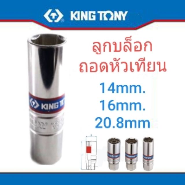 Kingtony บล็อกถอดหัวเทียนแกนยาง รู 1/2” (สี่หุน) ลูกบล็อก หัวเทียน