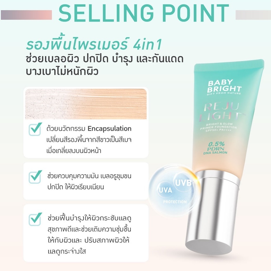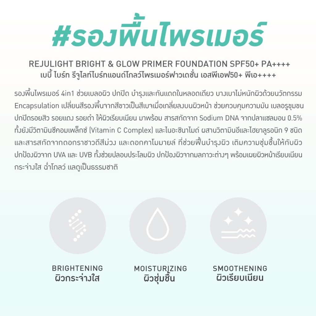 Baby Bright #รองพื้นไพรเมอร์【รีจูไลท์】Rejulight Bright Glow Primer Foundation SPF50+ PA++++ 30g.