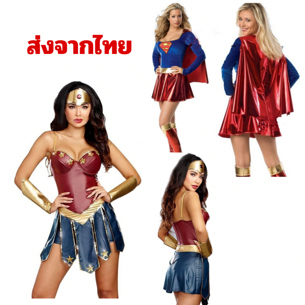 พร้อมส่งจากไทย ชุดแฟนซีซุปเปอร์ฮีโร่ผู้หญิง แบบกระโปรง ซุปเปอร์เกิร์ล วันเดอร์วูแมน Wonderwomen Supergirl ขนาด S-XXXL