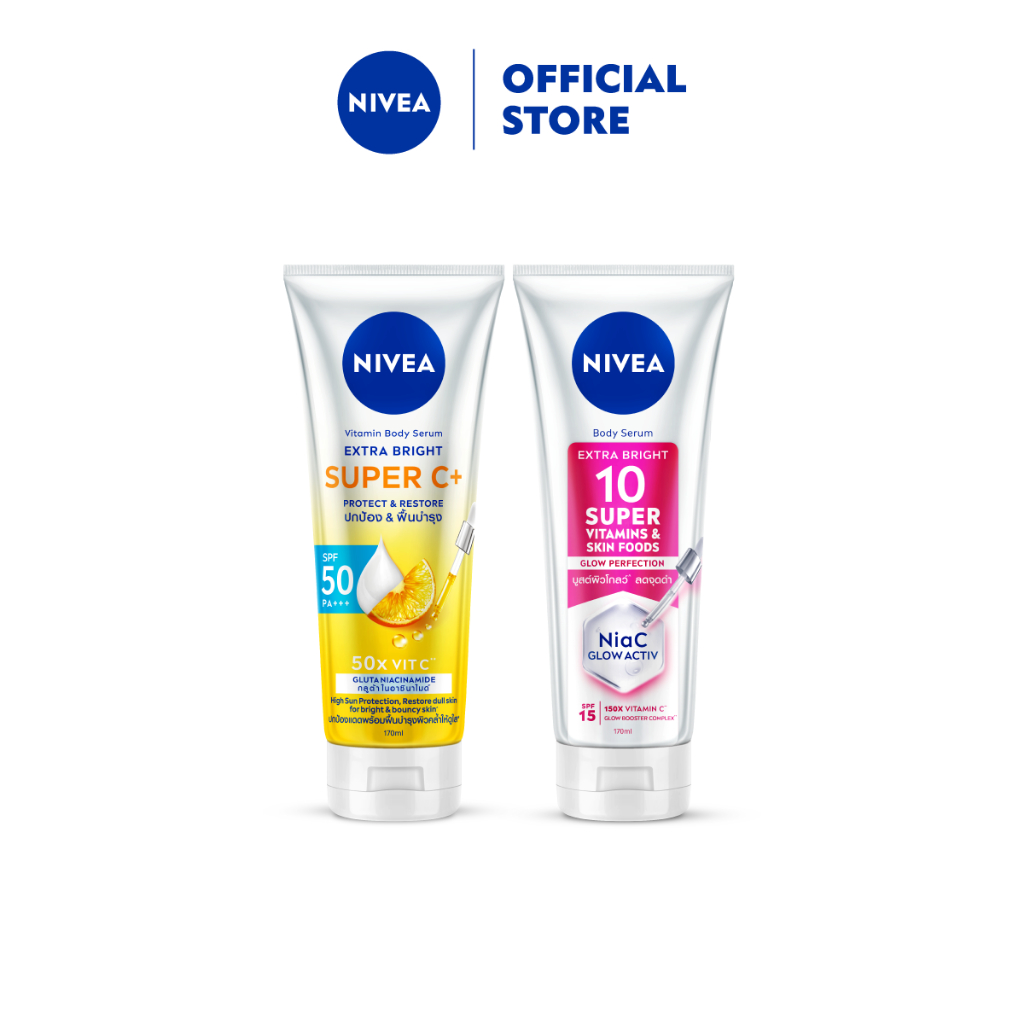 นีเวียเอ็กตร้าไบรท์ซูเปอร์ซี+นีเวียเซรั่มบำรุงผิวกายเอ็กซ์ตร้าไบรท์10ซูเปอร์วิตามินแอนด์สกินฟู้ด170มล