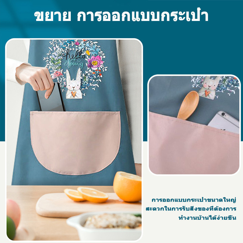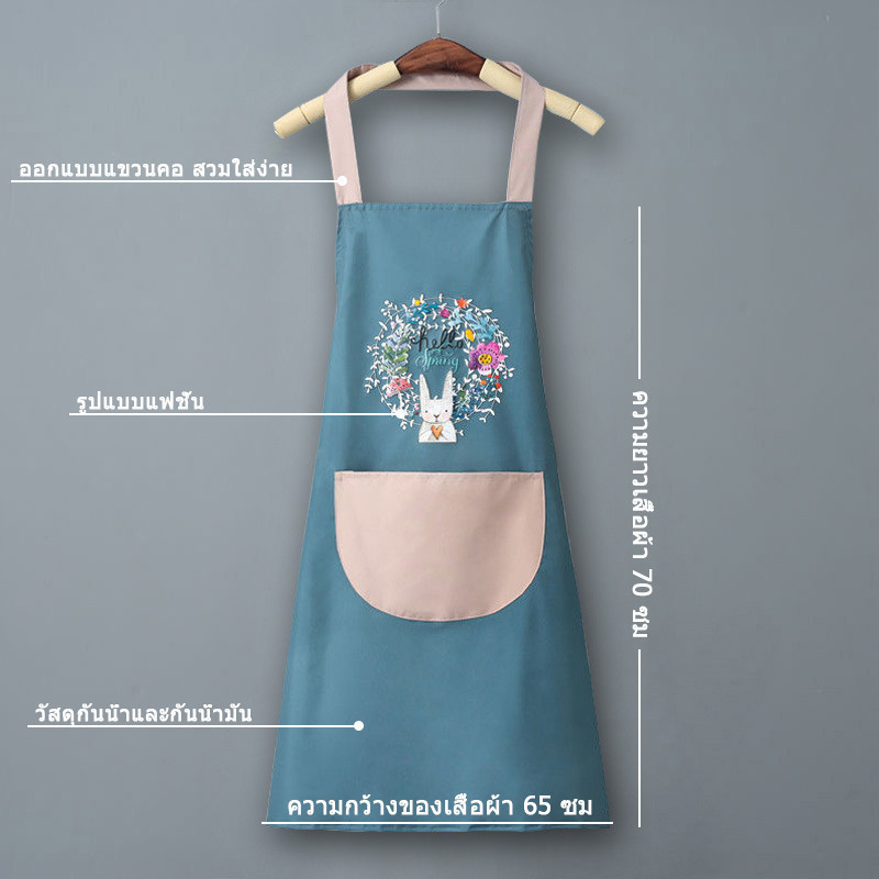 ผ้ากันเปื้อน ผ้ากันเปื้อนกันน้ำ ผ้าหนา สไตล์เกาหลี ลายการ์ตูนน่ารัก