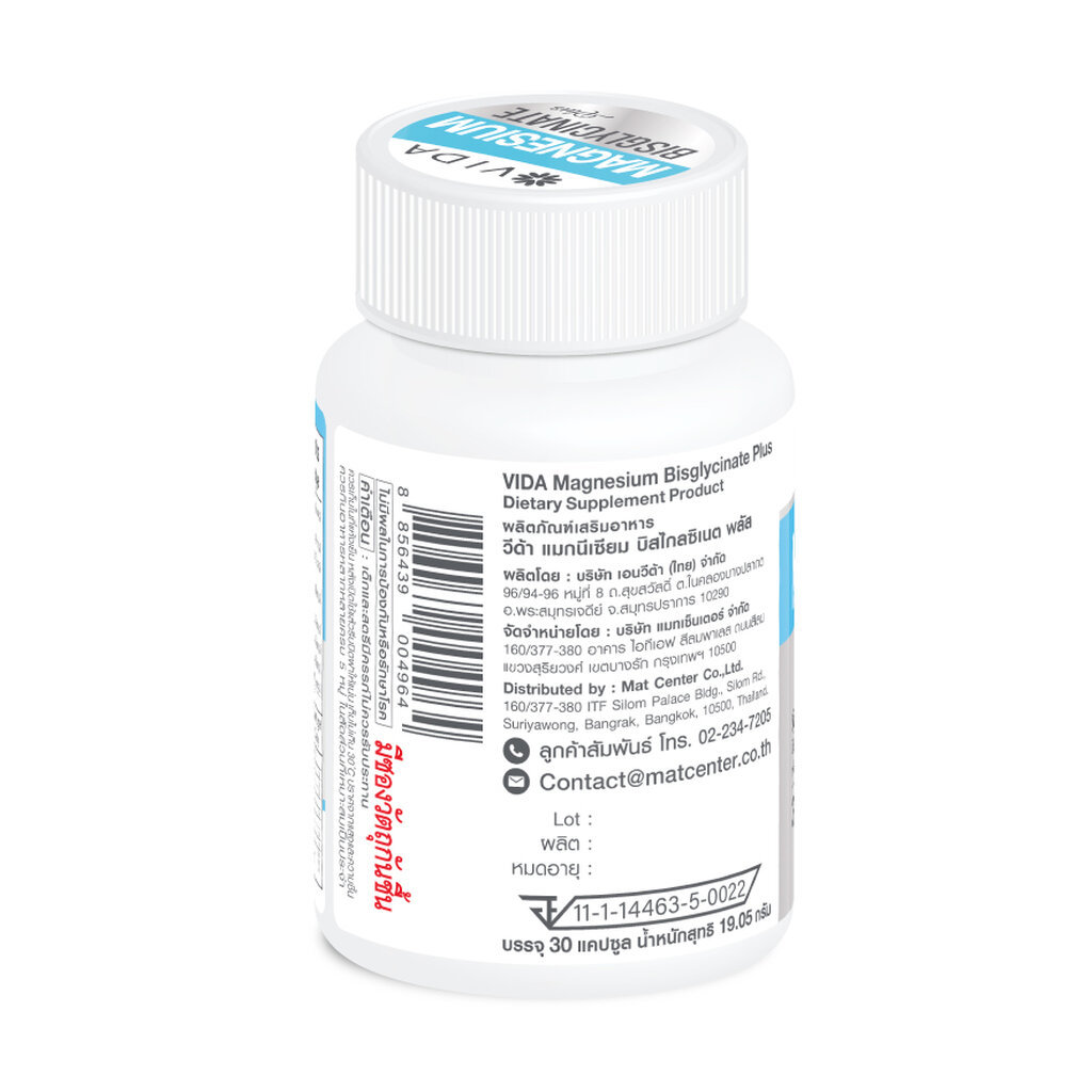 Vida วีด้า แมกนีเซียม บิสไกลซิเนต พลัส 30 แคปซูล ผลิตภัณฑ์เสริมอาหาร