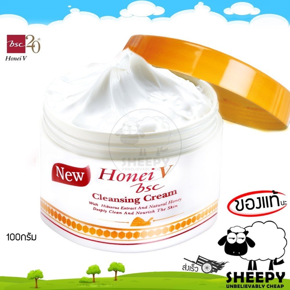BSC ฮันนี่ วี บีเอสซี คลีนซิ่งครีม ครีมล้างหน้า เช็ดหน้า ล้างเครื่องสำอาง Honei V BSC Cleansing Cream 100กรัม (sheepy)