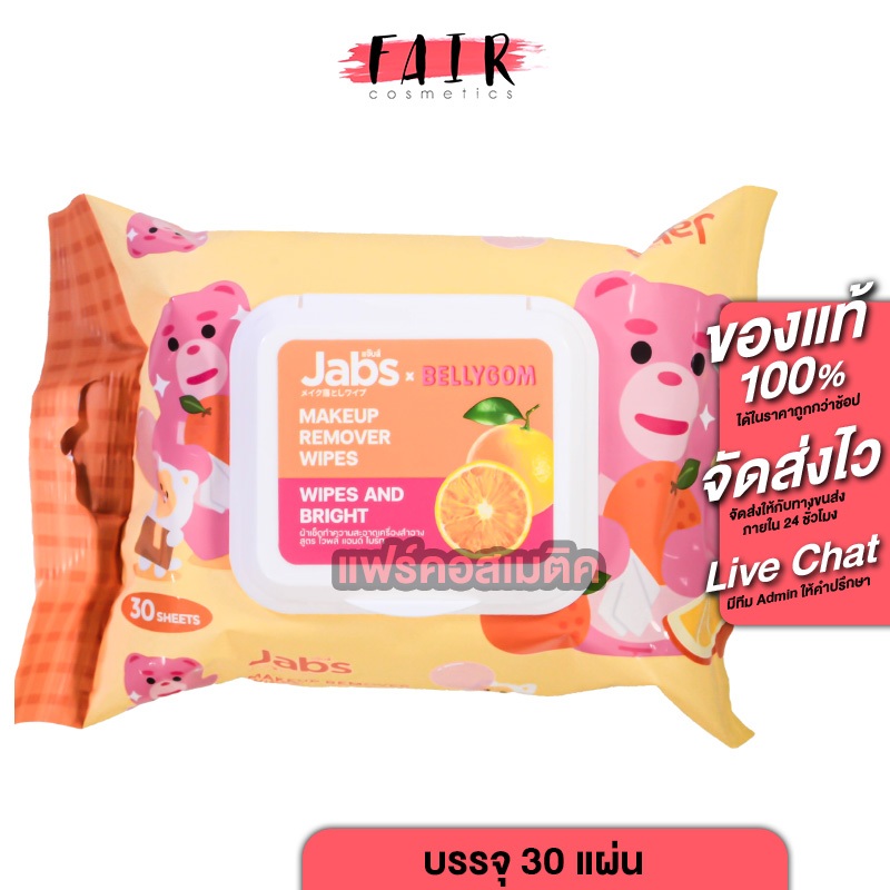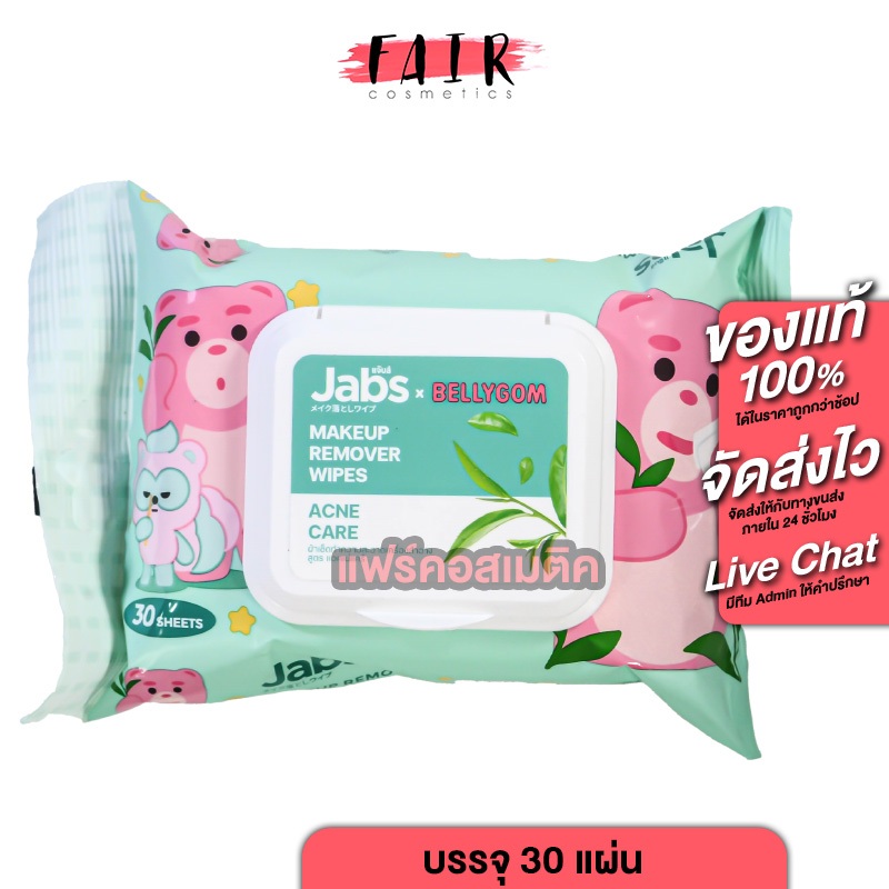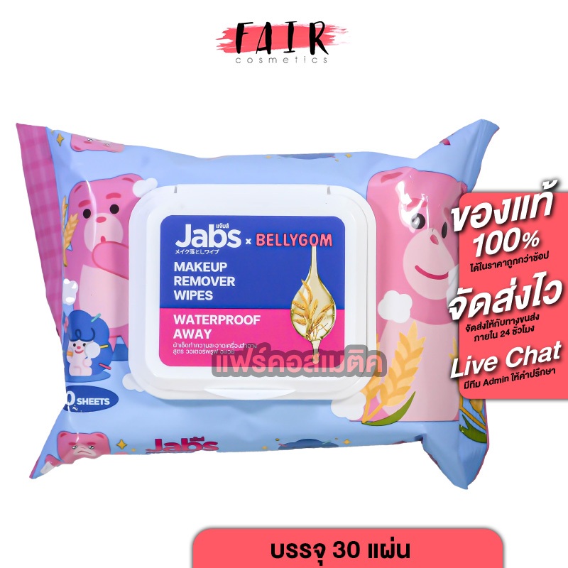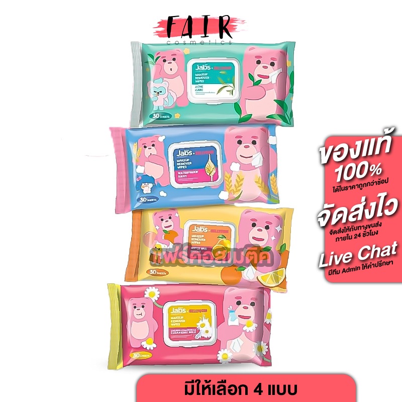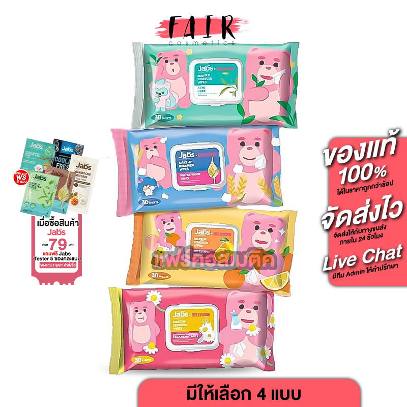 Jabs MakeUp Remover Wipes แจ๊บ เมคอัพ รีมูฟเวอร์ ไวพส์ [มีให้เลือก 4 สูตร] แผ่นเช็ดเครื่องสําอาง ทิชชู่เปียก [30 แผ่น]