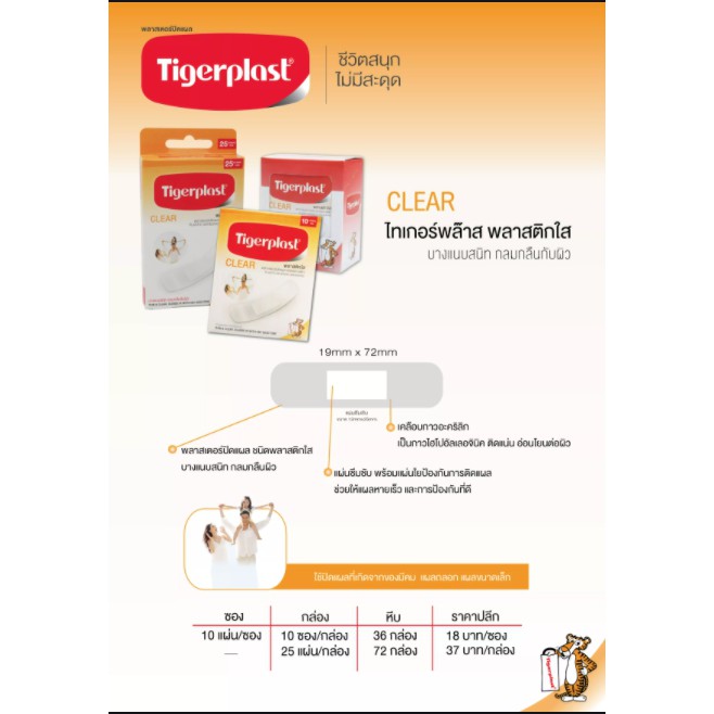 Tigerplast CLEAR 25ชิ้น พลาสเตอร์ปิดแผล ชนิดพลาสติกใส บางแนบสนิทกลมกลืนกับผิว ขนาด19x72mm #8095