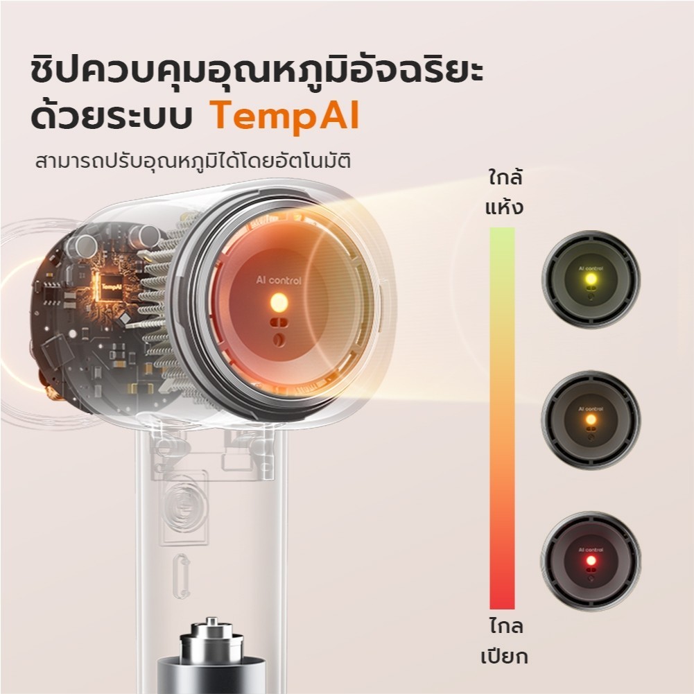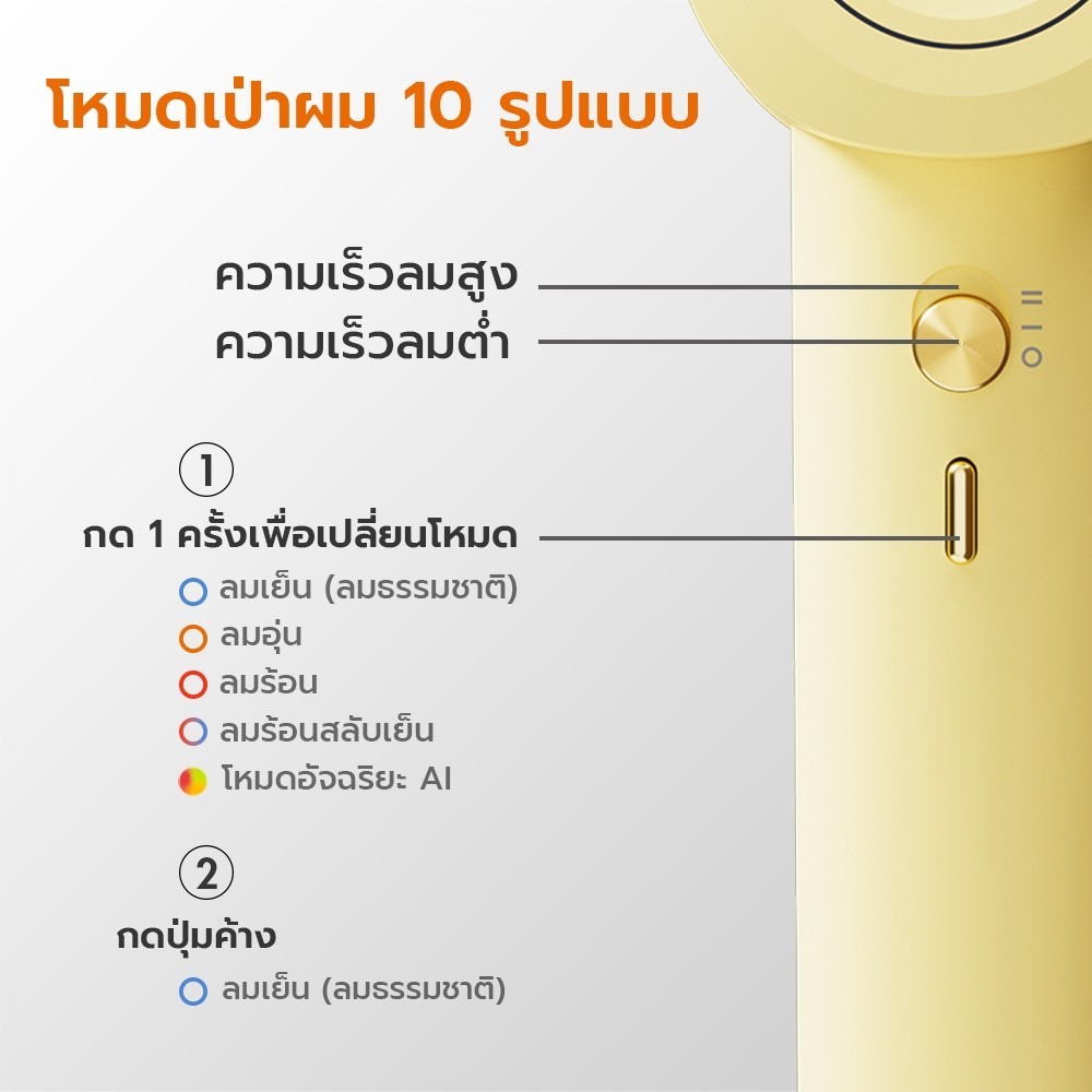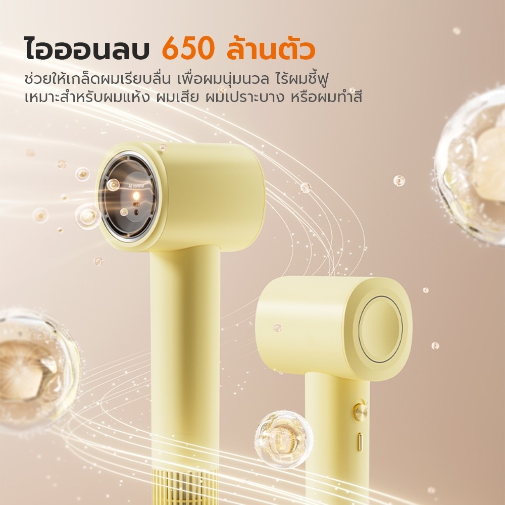 Gaabor Hair Dryer เครื่องเป่าผม AI รักษาอุณหภูมิ 50°C ไอออนลบ 600 ล้านตัว แห้งเร็ว+ผมสวย แบบ Mini พกพาง่าย