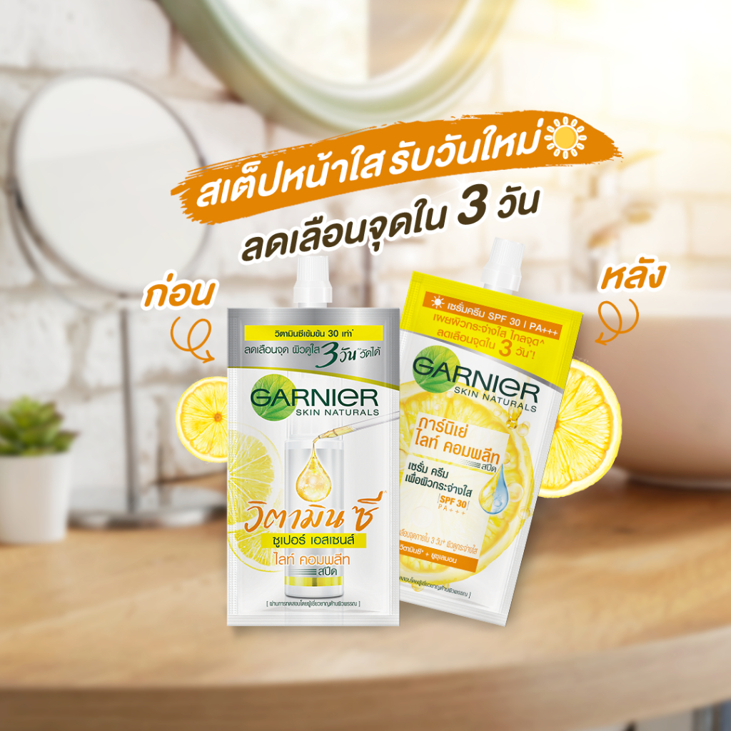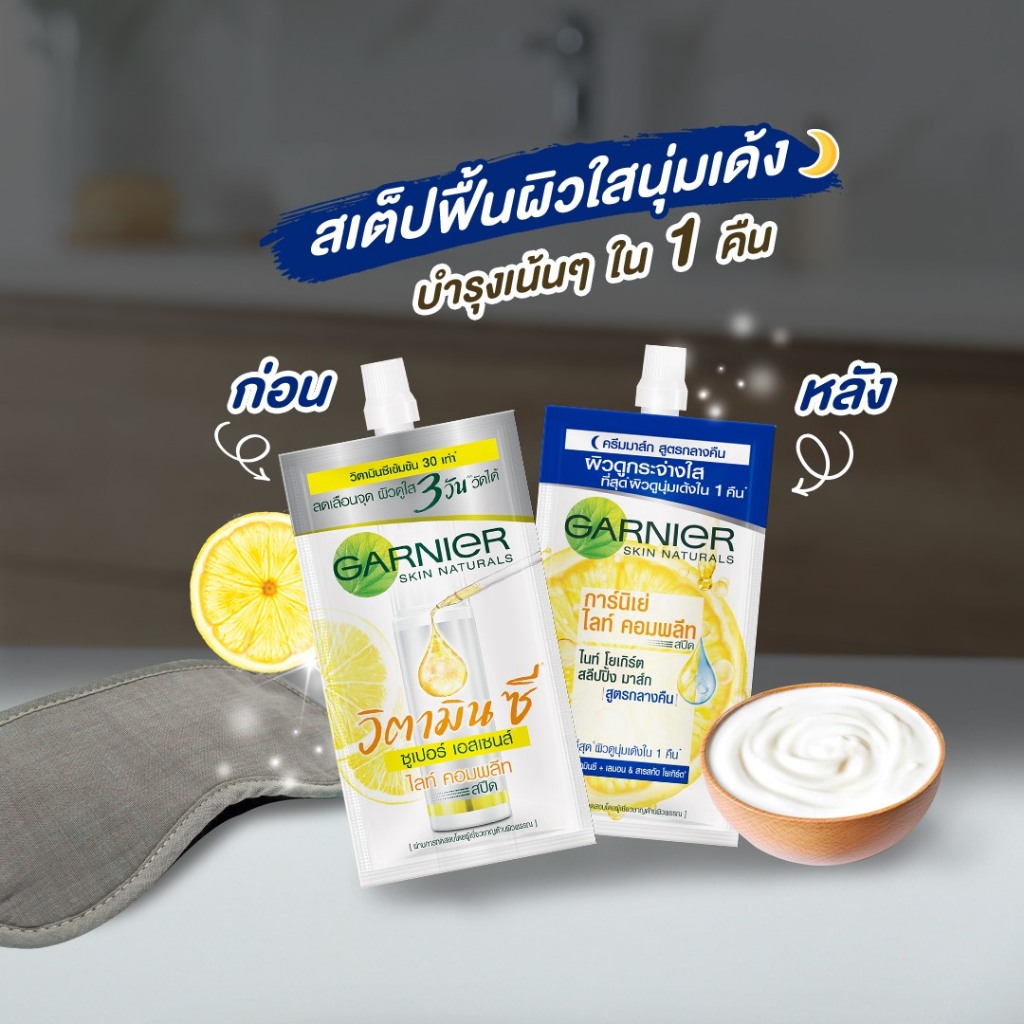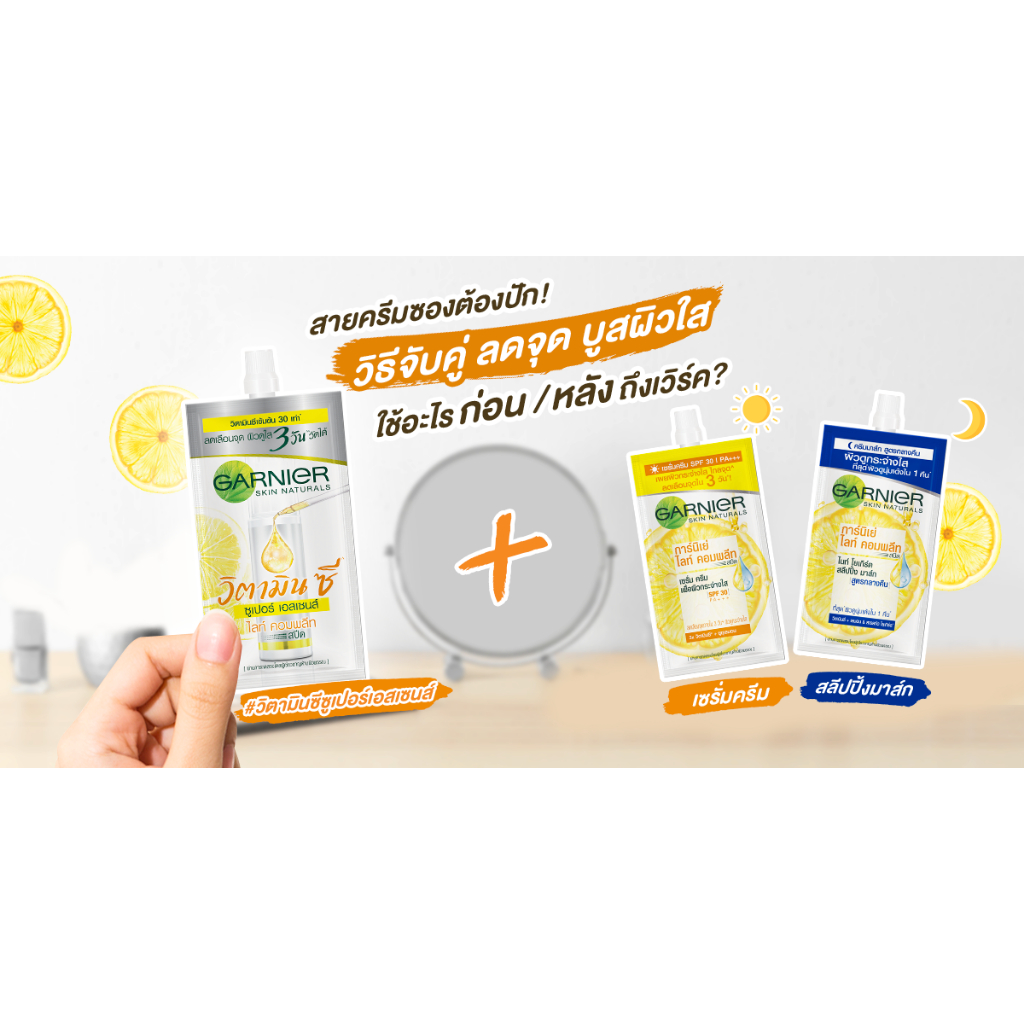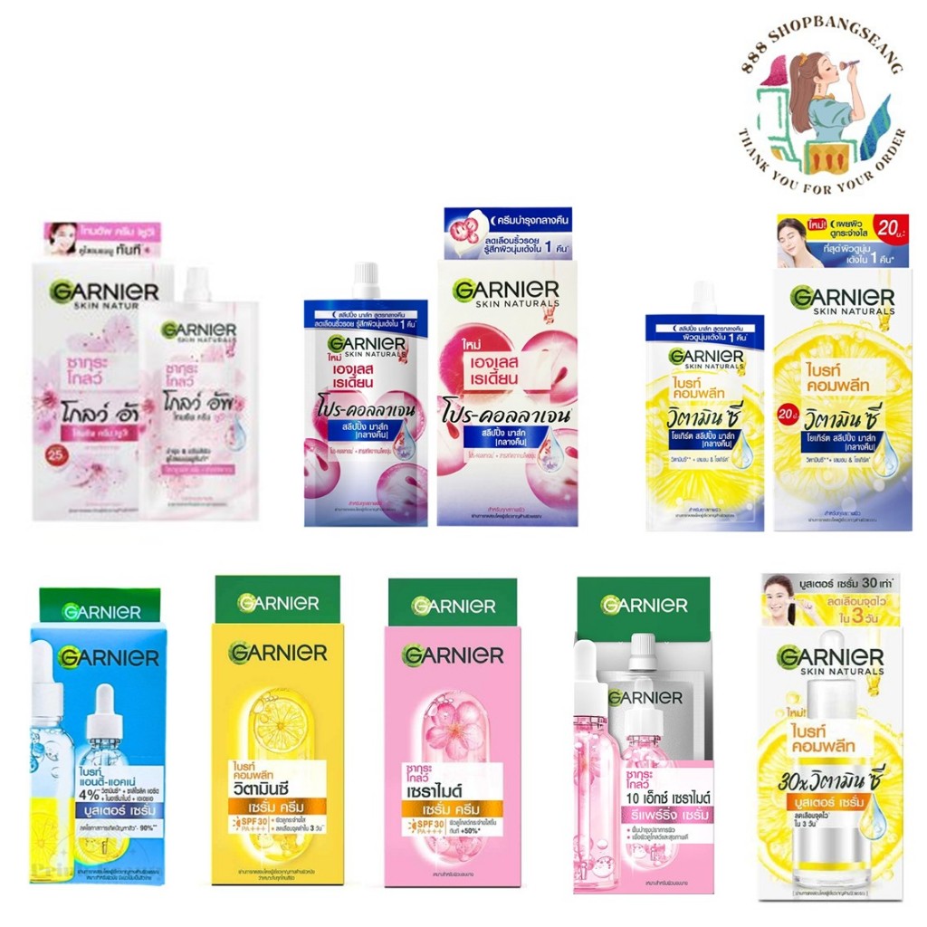 (กล่อง/6ซอง)การ์นิเย่ ครีมซอง ฝาหมุน ไลท์ คอมพลีท/ซากุระ/เอจเลส/ยูวี/วิตามินซี ครบทุกสูตร