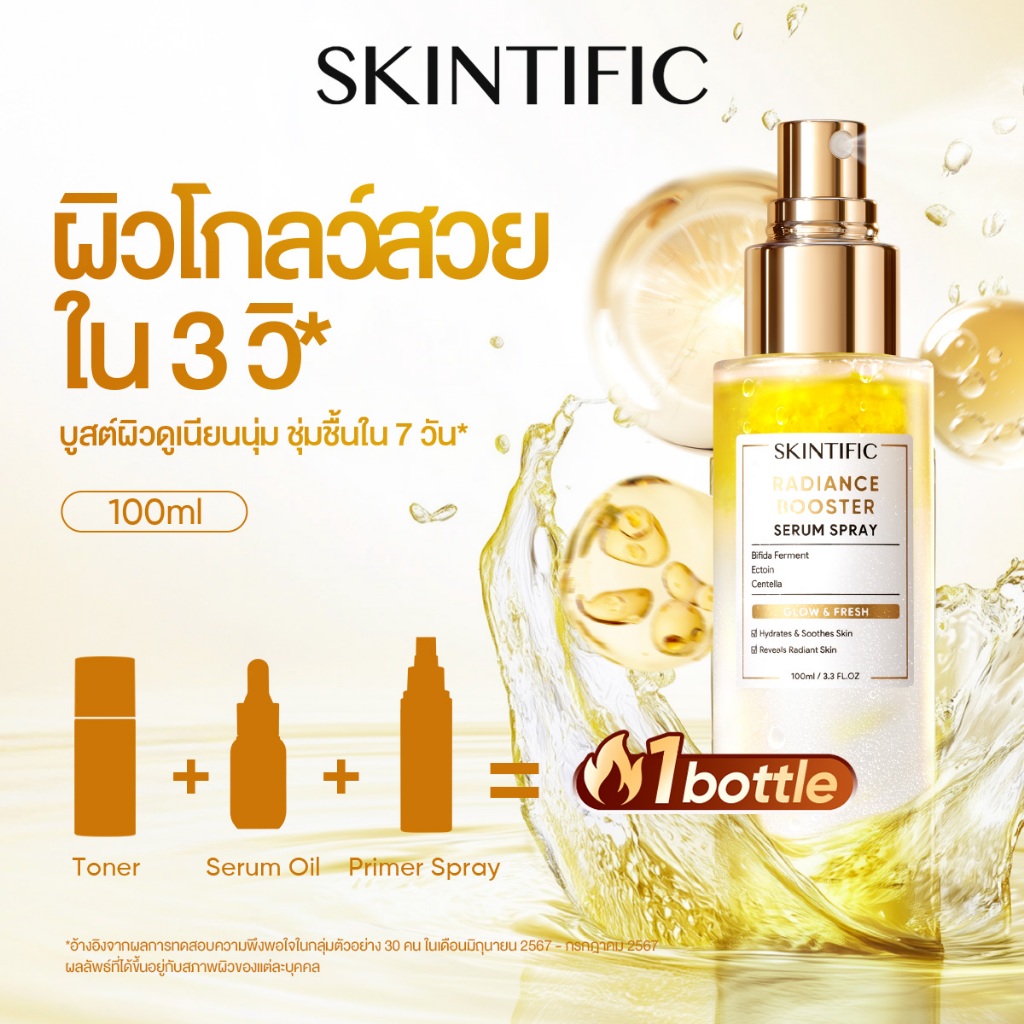 SKINTIFIC Radiance Booster Serum Spray ช่วยให้ผิวเปล่งปลั่ง สุขภาพดี และกระจ่างใสตลอดทั้งวัน