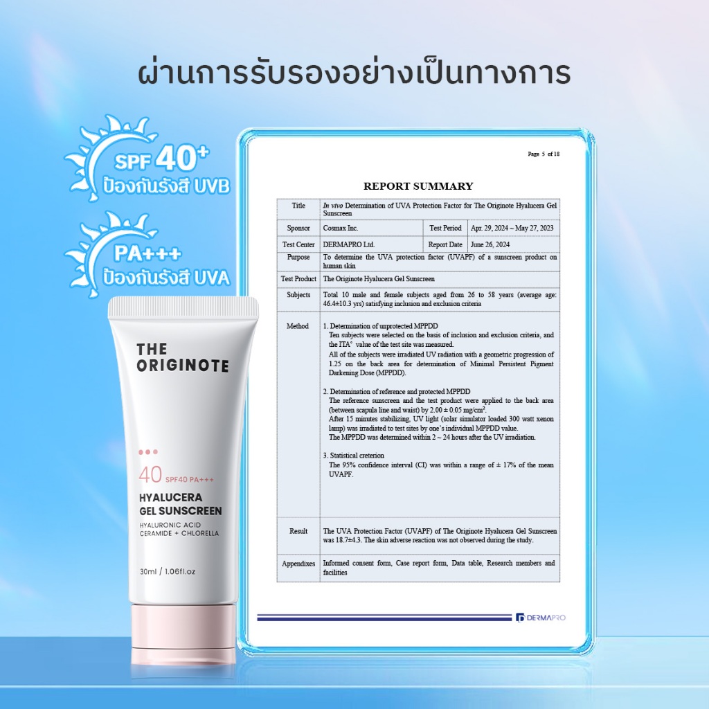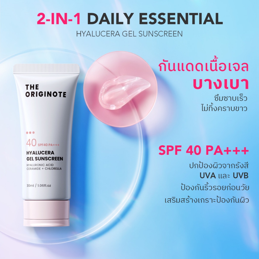 The Originote Hyalucera Gel Sunscreen SPF 40 PA+++ กันแดด กันแดดหน้า ครีมกันแดด ซึมไว ไม่เหนอะหนะ กันแดดตัว