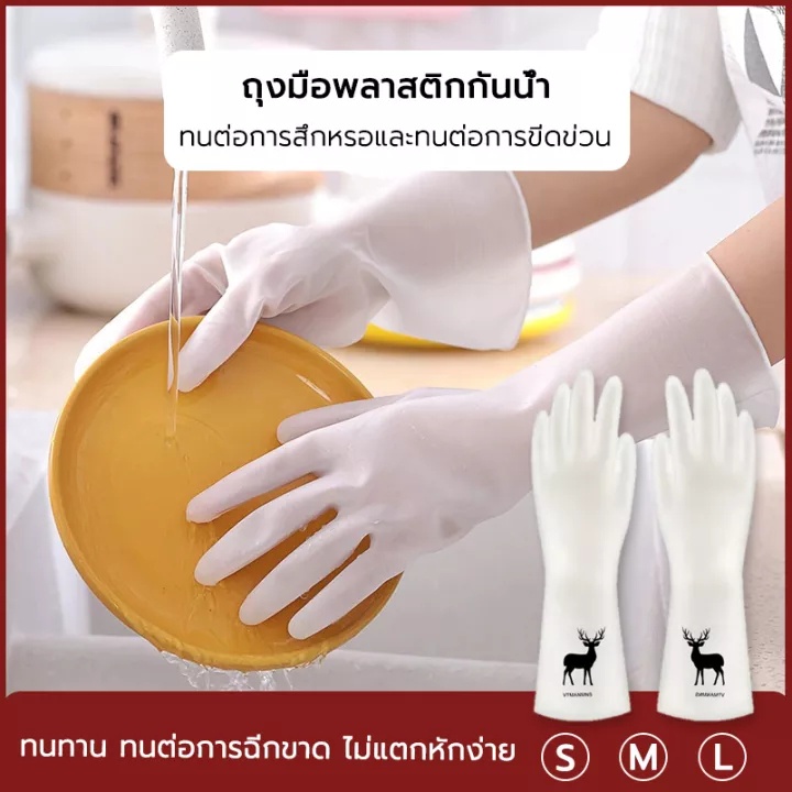 ถุงมือล้างจาน ถุงมือ แนบสนิทกับผิวไม่ทำลายง่ายปกป้องมือ